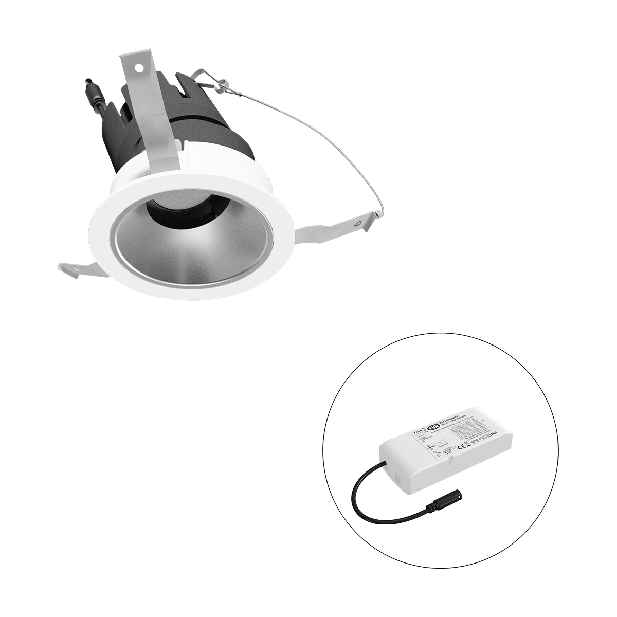 Mit der COB-LED Deckeneinbauleuchte lassen sich vielfältige Anwendungen im Innenbereich, wie z. B. Effektbeleuchtung, Raumbeleuchtung, Akzentuierte Beleuchtung und vieles mehr realisieren. Zusätzliche Kosten für Leuchtmittel entfallen bei dieser Leuchte, da die Leistung von einem fest verbauten LED-Chip geliefert wird. Da im Lieferumfang das Netzgerät bereits enthalten ist, fallen auch hierfür keine zusätzlichen Kosten an. Die Leuchte ist mit diesem Reflektor um 30° schwenkbar. Gehäusefarbe ähnlich RAL9003. Weitere Merkmale: Farbwiedergabeindex CRI92, Bemessungslebensdauer L90B10 bei 50000h.