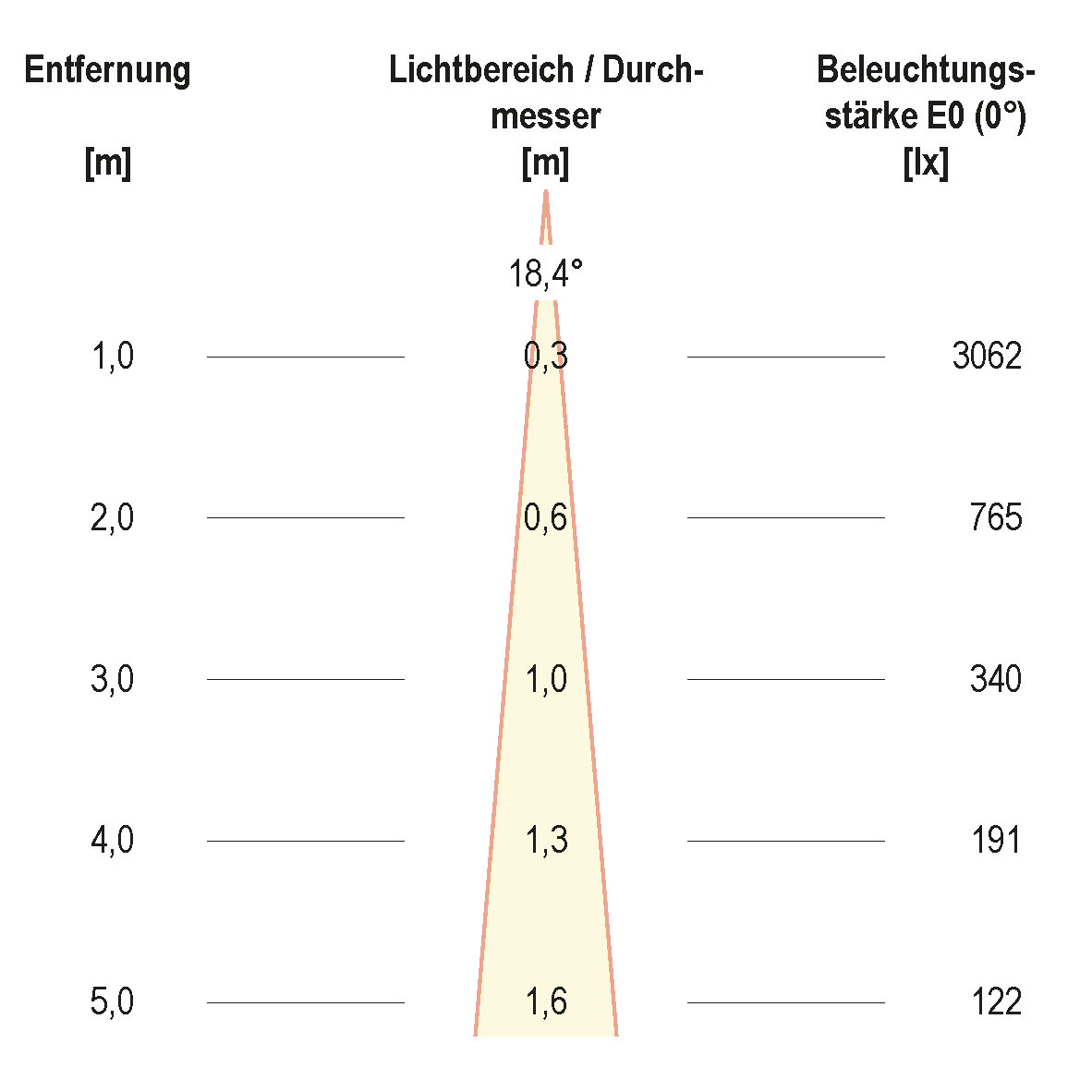| Ausstrahlungswinkel (Bereich) | engstrahlend 11-20° |