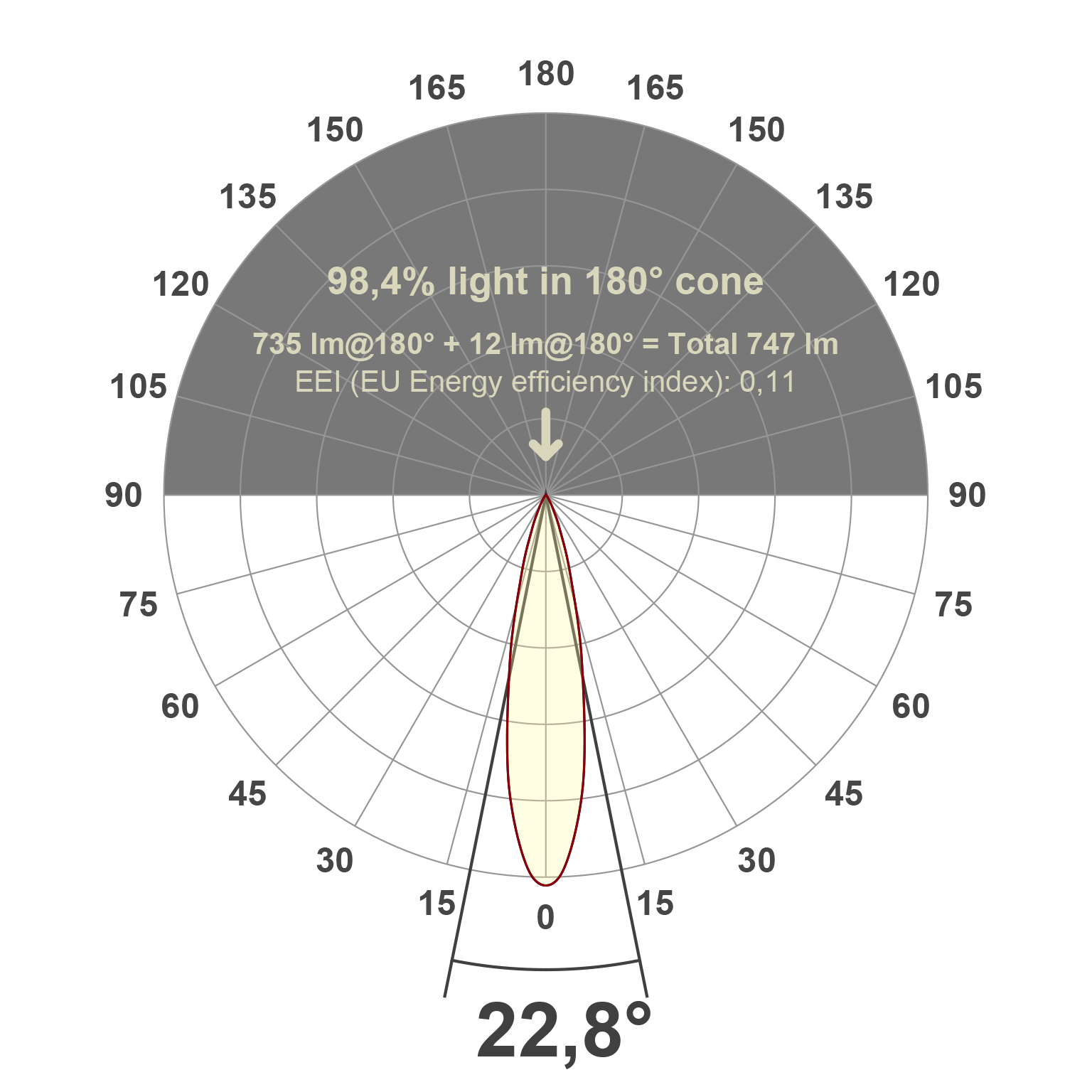 | Ausstrahlungswinkel (Bereich) | engstrahlend 11-20° |