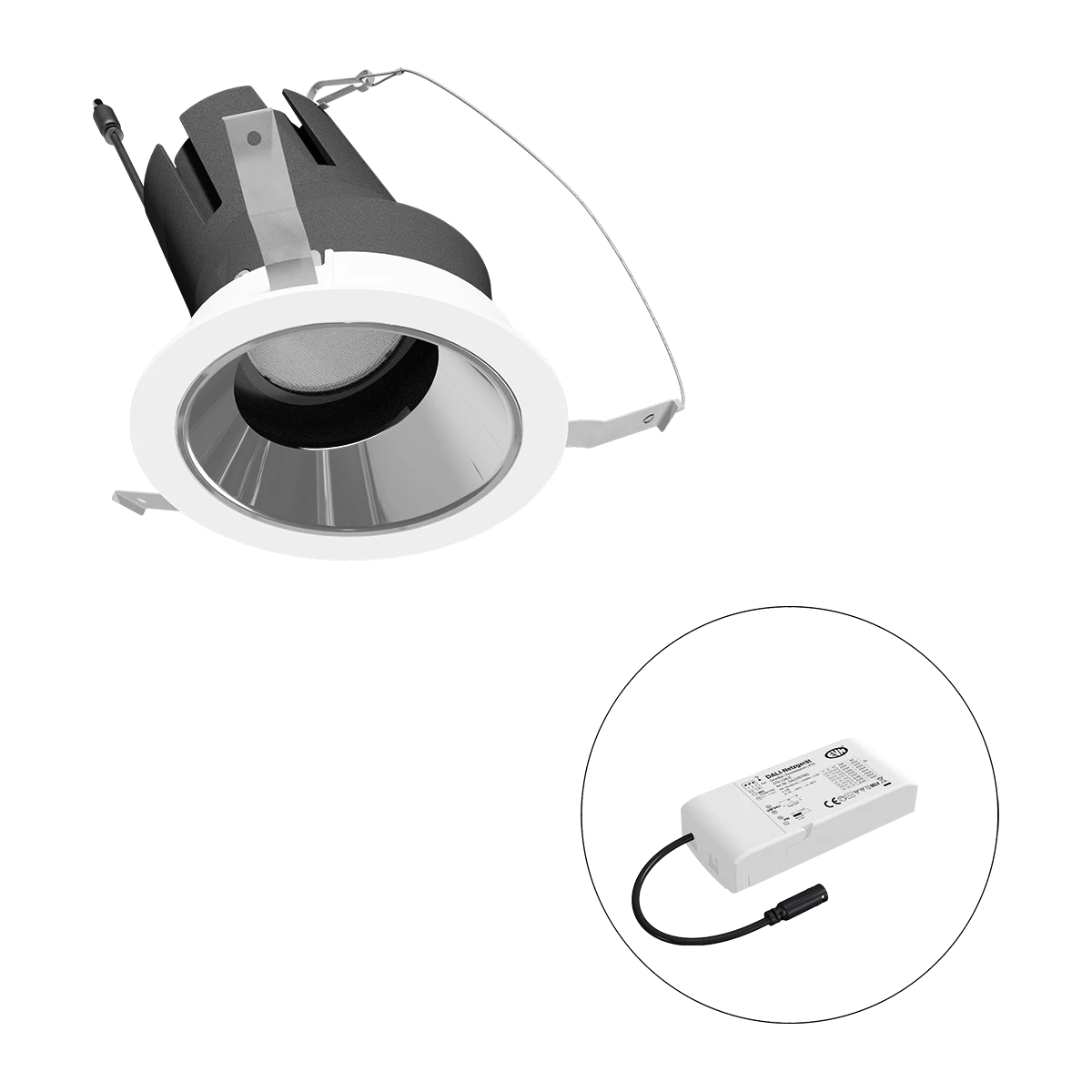 Mit der COB-LED Deckeneinbauleuchte lassen sich vielfältige Anwendungen im Innenbereich, wie z. B. Effektbeleuchtung, Raumbeleuchtung, Akzentuierte Beleuchtung und vieles mehr realisieren. Zusätzliche Kosten für Leuchtmittel entfallen bei dieser Leuchte, da die Leistung von einem fest verbauten LED-Chip geliefert wird. Da im Lieferumfang das Netzgerät bereits enthalten ist, fallen auch hierfür keine zusätzlichen Kosten an. Die Leuchte ist mit diesem Reflektor um 30° schwenkbar. Gehäusefarbe ähnlich RAL9003. Weitere Merkmale: Farbwiedergabeindex CRI92, Bemessungslebensdauer L90B10 bei 50000h.