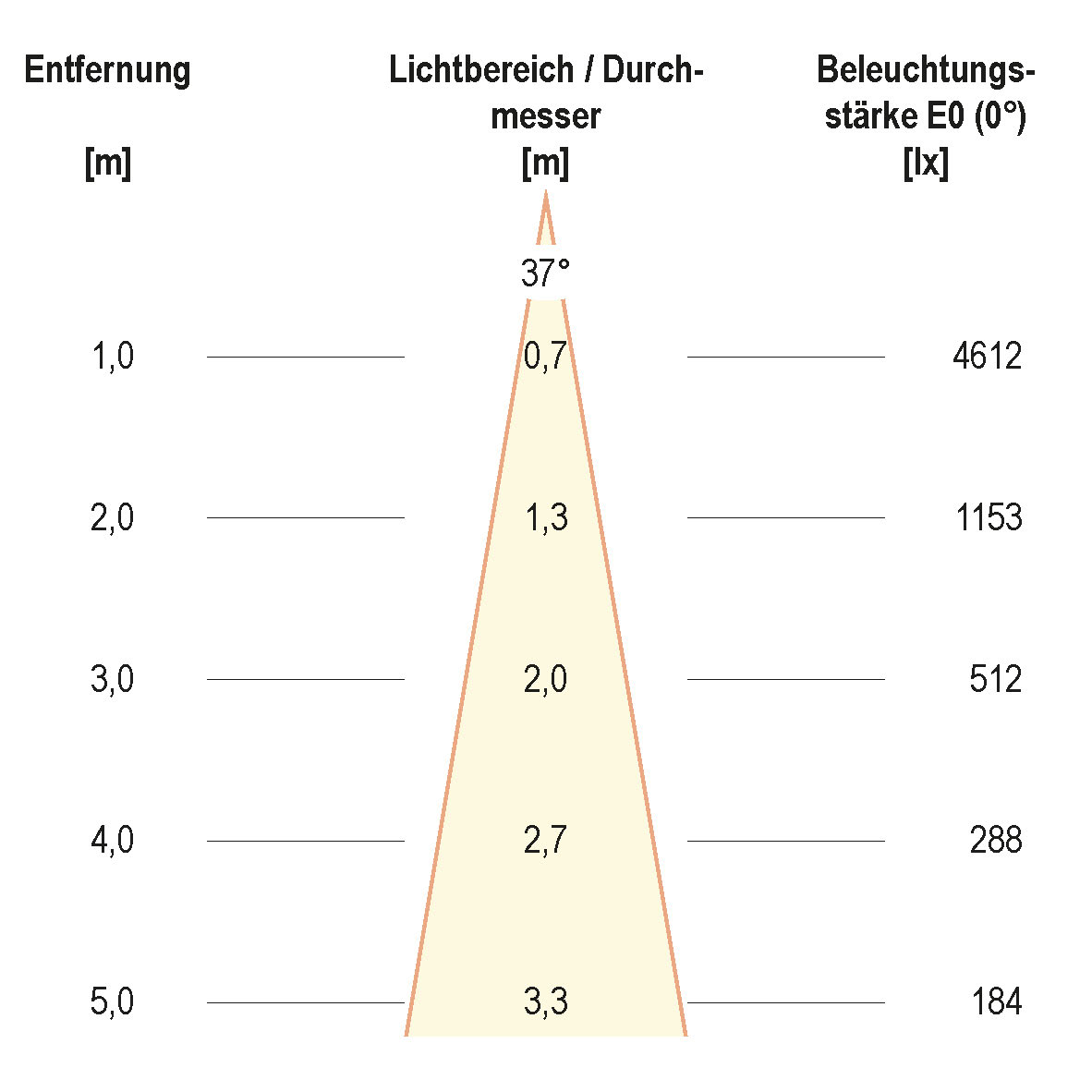 | Ausstrahlungswinkel (Bereich) | mediumstrahlend 21-40° |