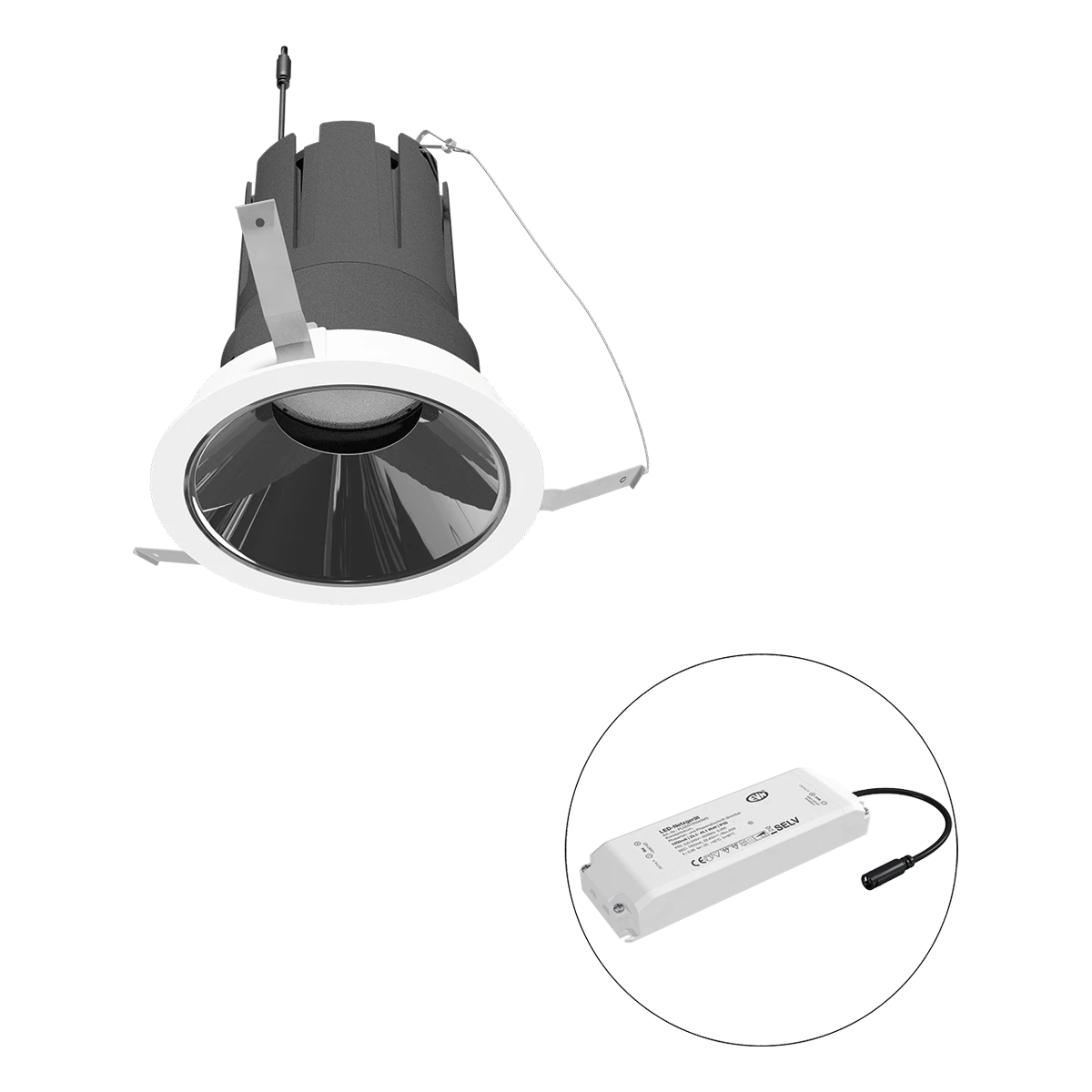Mit der COB-LED Deckeneinbauleuchte lassen sich vielfältige Anwendungen im Innenbereich, wie z. B. Effektbeleuchtung, Raumbeleuchtung, Akzentuierte Beleuchtung und vieles mehr realisieren. Zusätzliche Kosten für Leuchtmittel entfallen bei dieser Leuchte, da die Leistung von einem fest verbauten LED-Chip geliefert wird. Da im Lieferumfang das Netzgerät bereits enthalten ist, fallen auch hierfür keine zusätzlichen Kosten an. Die Leuchte ist mit diesem Reflektor um 30° schwenkbar. Gehäusefarbe ähnlich RAL9003. Weitere Merkmale: Farbwiedergabeindex CRI92, Bemessungslebensdauer L90B10 bei 50000h.
