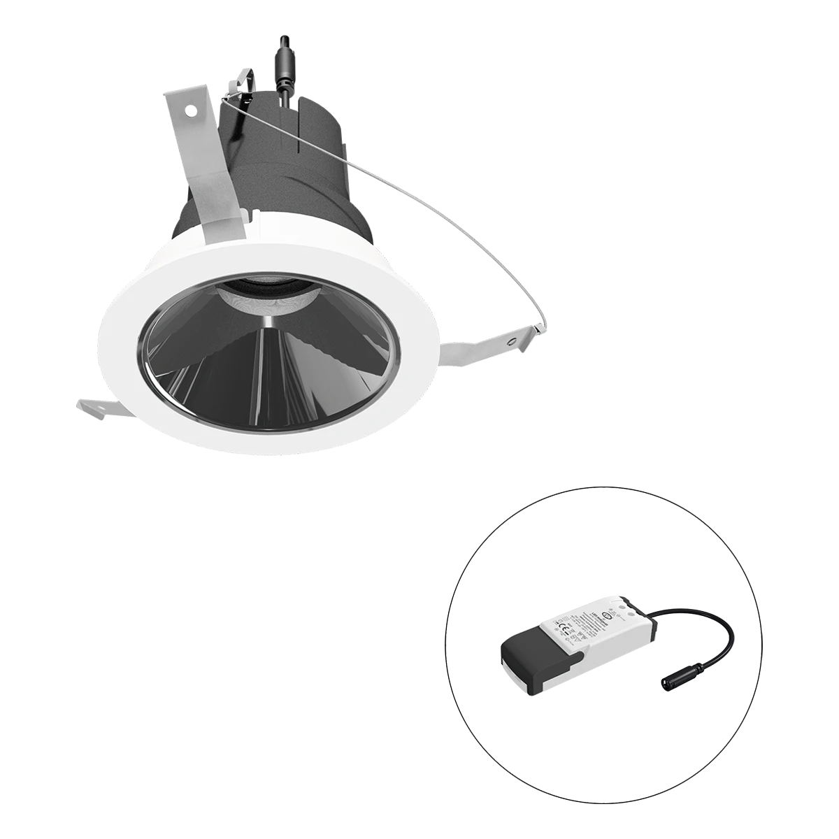 Mit der COB-LED Deckeneinbauleuchte lassen sich vielfältige Anwendungen im Innenbereich, wie z. B. Effektbeleuchtung, Raumbeleuchtung, Akzentuierte Beleuchtung und vieles mehr realisieren. Zusätzliche Kosten für Leuchtmittel entfallen bei dieser Leuchte, da die Leistung von einem fest verbauten LED-Chip geliefert wird. Da im Lieferumfang das Netzgerät bereits enthalten ist, fallen auch hierfür keine zusätzlichen Kosten an. Gehäusefarbe ähnlich RAL9003. Weitere Merkmale: Farbwiedergabeindex CRI92, Bemessungslebensdauer L90B10 bei 50000h.
