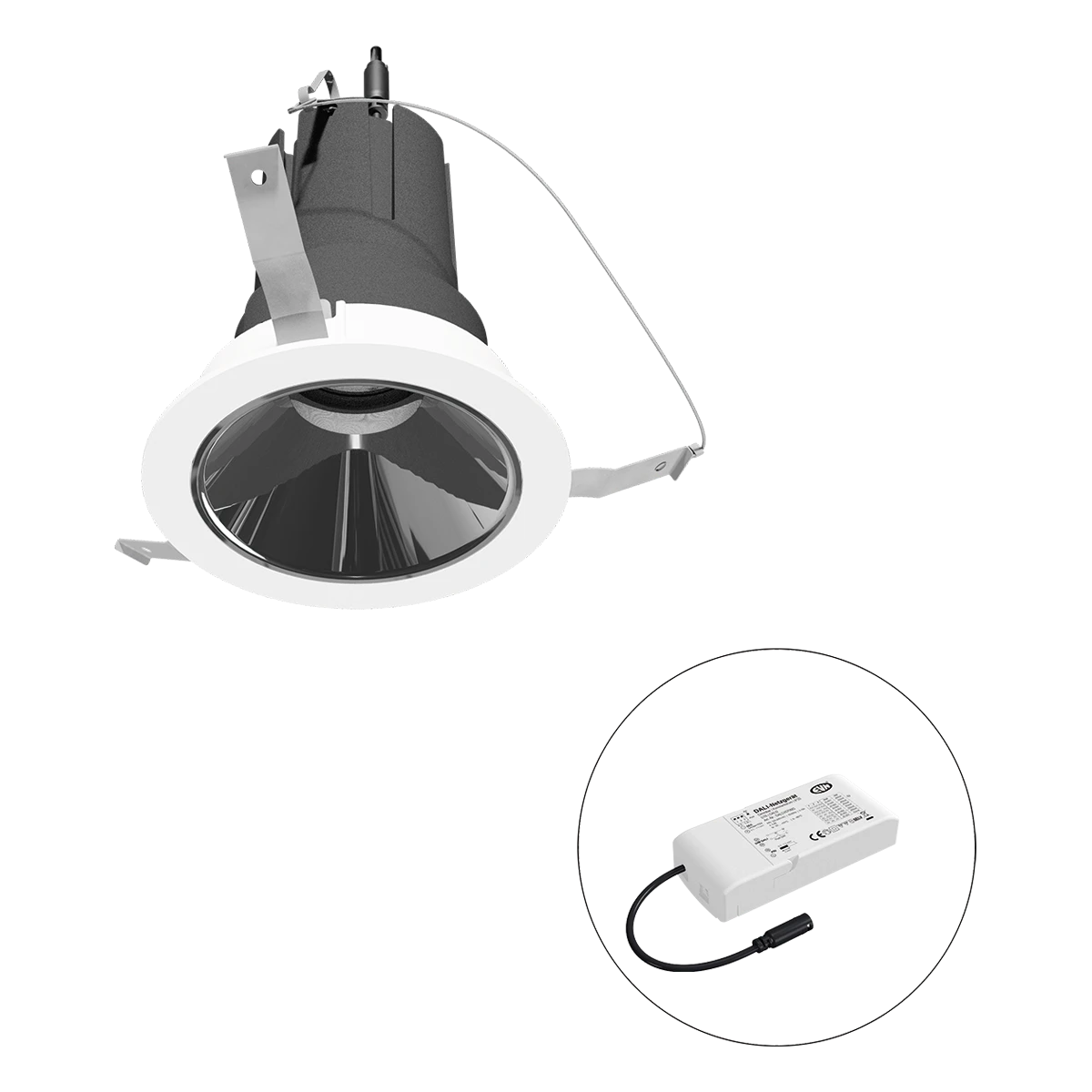 Mit der COB-LED Deckeneinbauleuchte lassen sich vielfältige Anwendungen im Innenbereich, wie z. B. Effektbeleuchtung, Raumbeleuchtung, Akzentuierte Beleuchtung und vieles mehr realisieren. Zusätzliche Kosten für Leuchtmittel entfallen bei dieser Leuchte, da die Leistung von einem fest verbauten LED-Chip geliefert wird. Da im Lieferumfang das Netzgerät bereits enthalten ist, fallen auch hierfür keine zusätzlichen Kosten an. Gehäusefarbe ähnlich RAL9003. Weitere Merkmale: Farbwiedergabeindex CRI92, Bemessungslebensdauer L90B10 bei 50000h.