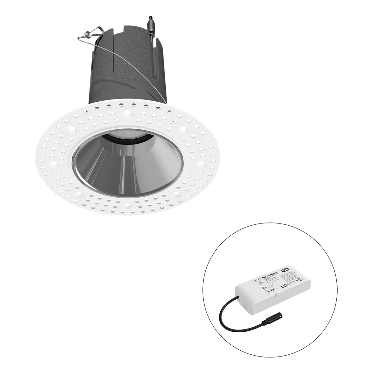 Mit der COB-LED Deckeneinbauleuchte lassen sich vielfältige Anwendungen im Innenbereich, wie z. B. Effektbeleuchtung, Raumbeleuchtung, Akzentuierte Beleuchtung und vieles mehr realisieren. Zusätzliche Kosten für Leuchtmittel entfallen bei dieser Leuchte, da die Leistung von einem fest verbauten LED-Chip geliefert wird. Da im Lieferumfang das Netzgerät bereits enthalten ist, fallen auch hierfür keine zusätzlichen Kosten an. Gehäusefarbe ähnlich RAL9003. Weitere Merkmale: Farbwiedergabeindex CRI92, Bemessungslebensdauer L90B10 bei 50000h.