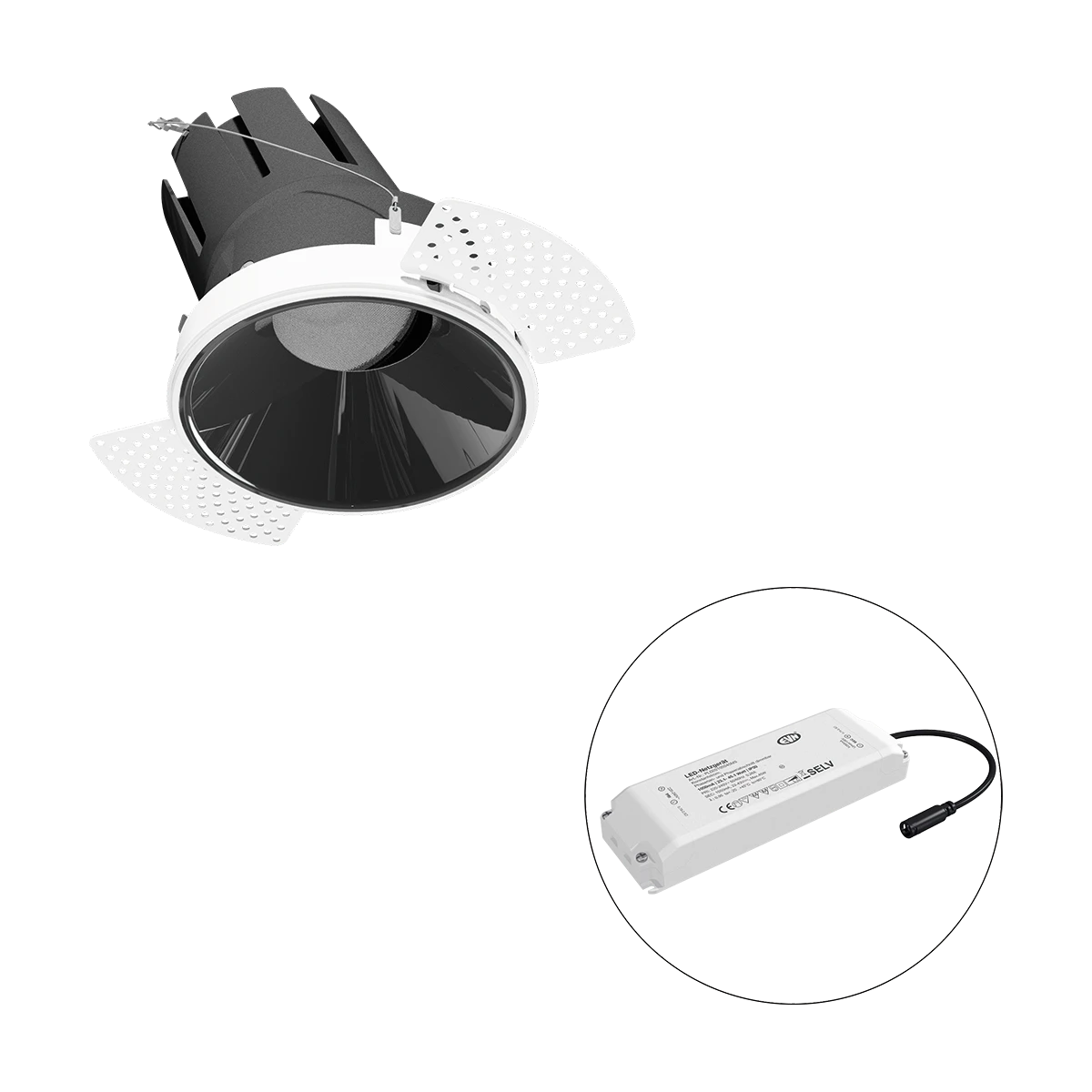 Mit der COB-LED Deckeneinbauleuchte lassen sich vielfältige Anwendungen im Innenbereich, wie z. B. Effektbeleuchtung, Raumbeleuchtung, Akzentuierte Beleuchtung und vieles mehr realisieren. Zusätzliche Kosten für Leuchtmittel entfallen bei dieser Leuchte, da die Leistung von einem fest verbauten LED-Chip geliefert wird. Da im Lieferumfang das Netzgerät bereits enthalten ist, fallen auch hierfür keine zusätzlichen Kosten an. Die Leuchte ist mit diesem Reflektor um 30° schwenkbar. Gehäusefarbe ähnlich RAL9003. Weitere Merkmale: Farbwiedergabeindex CRI92, Bemessungslebensdauer L90B10 bei 50000h.