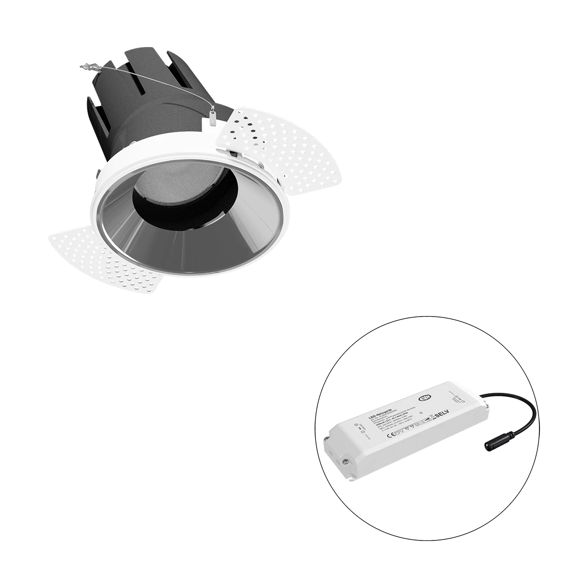 Mit der COB-LED Deckeneinbauleuchte lassen sich vielfältige Anwendungen im Innenbereich, wie z. B. Effektbeleuchtung, Raumbeleuchtung, Akzentuierte Beleuchtung und vieles mehr realisieren. Zusätzliche Kosten für Leuchtmittel entfallen bei dieser Leuchte, da die Leistung von einem fest verbauten LED-Chip geliefert wird. Da im Lieferumfang das Netzgerät bereits enthalten ist, fallen auch hierfür keine zusätzlichen Kosten an. Die Leuchte ist mit diesem Reflektor um 30° schwenkbar. Gehäusefarbe ähnlich RAL9003. Weitere Merkmale: Farbwiedergabeindex CRI92, Bemessungslebensdauer L90B10 bei 50000h.