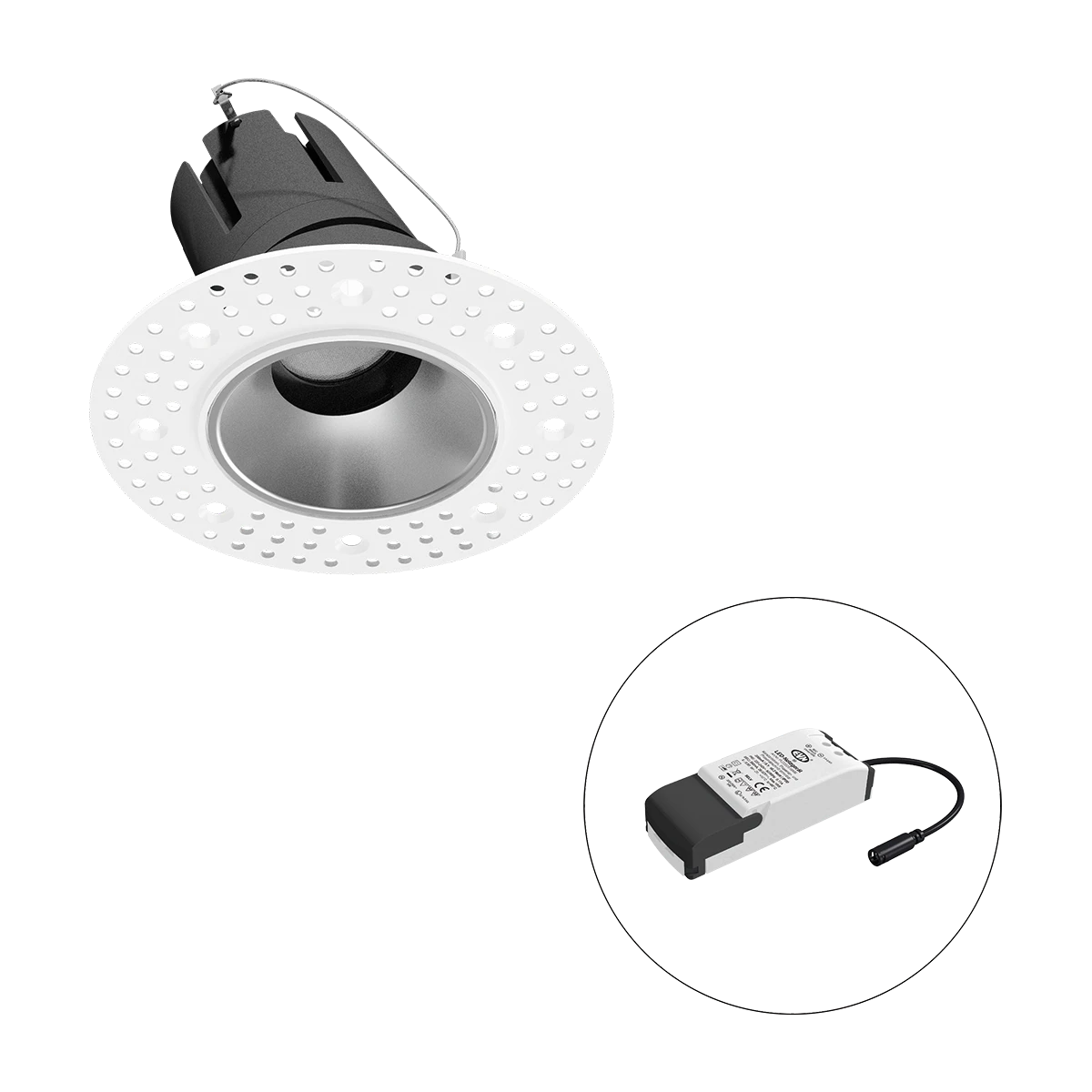 Mit der COB-LED Deckeneinbauleuchte lassen sich vielfältige Anwendungen im Innenbereich, wie z. B. Effektbeleuchtung, Raumbeleuchtung, Akzentuierte Beleuchtung und vieles mehr realisieren. Zusätzliche Kosten für Leuchtmittel entfallen bei dieser Leuchte, da die Leistung von einem fest verbauten LED-Chip geliefert wird. Da im Lieferumfang das Netzgerät bereits enthalten ist, fallen auch hierfür keine zusätzlichen Kosten an. Die Leuchte ist mit diesem Reflektor um 30° schwenkbar. Gehäusefarbe ähnlich RAL9003. Weitere Merkmale: Farbwiedergabeindex CRI92, Bemessungslebensdauer L90B10 bei 50000h.