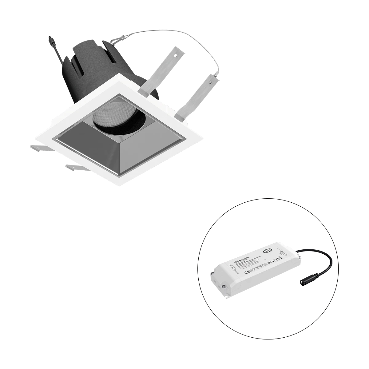 Mit der COB-LED Deckeneinbauleuchte lassen sich vielfältige Anwendungen im Innenbereich, wie z. B. Effektbeleuchtung, Raumbeleuchtung, Akzentuierte Beleuchtung und vieles mehr realisieren. Zusätzliche Kosten für Leuchtmittel entfallen bei dieser Leuchte, da die Leistung von einem fest verbauten LED-Chip geliefert wird. Da im Lieferumfang das Netzgerät bereits enthalten ist, fallen auch hierfür keine zusätzlichen Kosten an. Die Leuchte ist mit diesem Reflektor um 30° schwenkbar. Gehäusefarbe ähnlich RAL9003. Weitere Merkmale: Farbwiedergabeindex CRI92, Bemessungslebensdauer L90B10 bei 50000h.