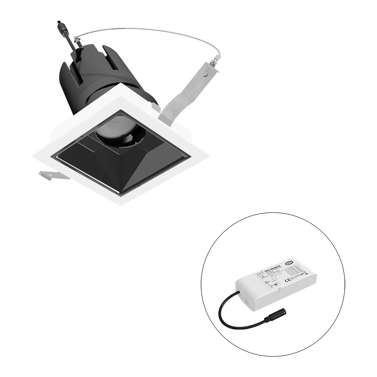 Mit der COB-LED Deckeneinbauleuchte lassen sich vielfältige Anwendungen im Innenbereich, wie z. B. Effektbeleuchtung, Raumbeleuchtung, Akzentuierte Beleuchtung und vieles mehr realisieren. Zusätzliche Kosten für Leuchtmittel entfallen bei dieser Leuchte, da die Leistung von einem fest verbauten LED-Chip geliefert wird. Da im Lieferumfang das Netzgerät bereits enthalten ist, fallen auch hierfür keine zusätzlichen Kosten an. Die Leuchte ist mit diesem Reflektor um 30° schwenkbar. Gehäusefarbe ähnlich RAL9003. Weitere Merkmale: Farbwiedergabeindex CRI92, Bemessungslebensdauer L90B10 bei 50000h.