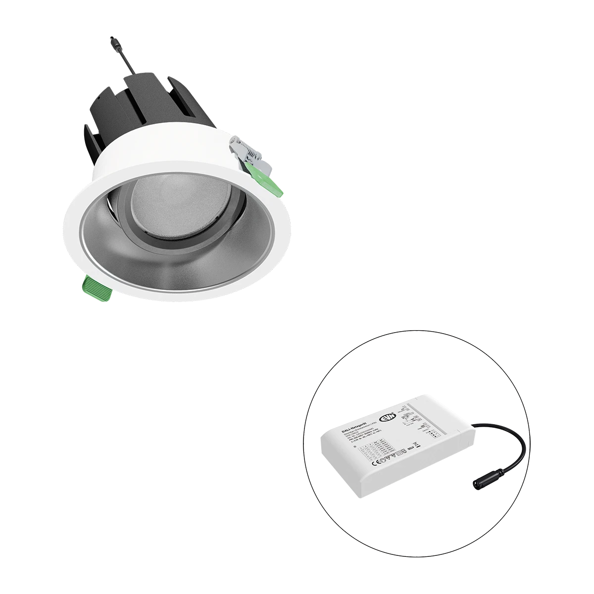 Mit der COB-LED Deckeneinbauleuchte lassen sich vielfältige Anwendungen im Innenbereich, wie z. B. Effektbeleuchtung, Raumbeleuchtung, Akzentuierte Beleuchtung und vieles mehr realisieren. Zusätzliche Kosten für Leuchtmittel entfallen bei dieser Leuchte, da die Leistung von einem fest verbauten LED-Chip geliefert wird. Da im Lieferumfang das Netzgerät bereits enthalten ist, fallen auch hierfür keine zusätzlichen Kosten an. Die Leuchte ist mit diesem Reflektor um 30° schwenkbar. Gehäusefarbe ähnlich RAL9003. Weitere Merkmale: Farbwiedergabeindex CRI92, Bemessungslebensdauer L90B10 bei 50000h.