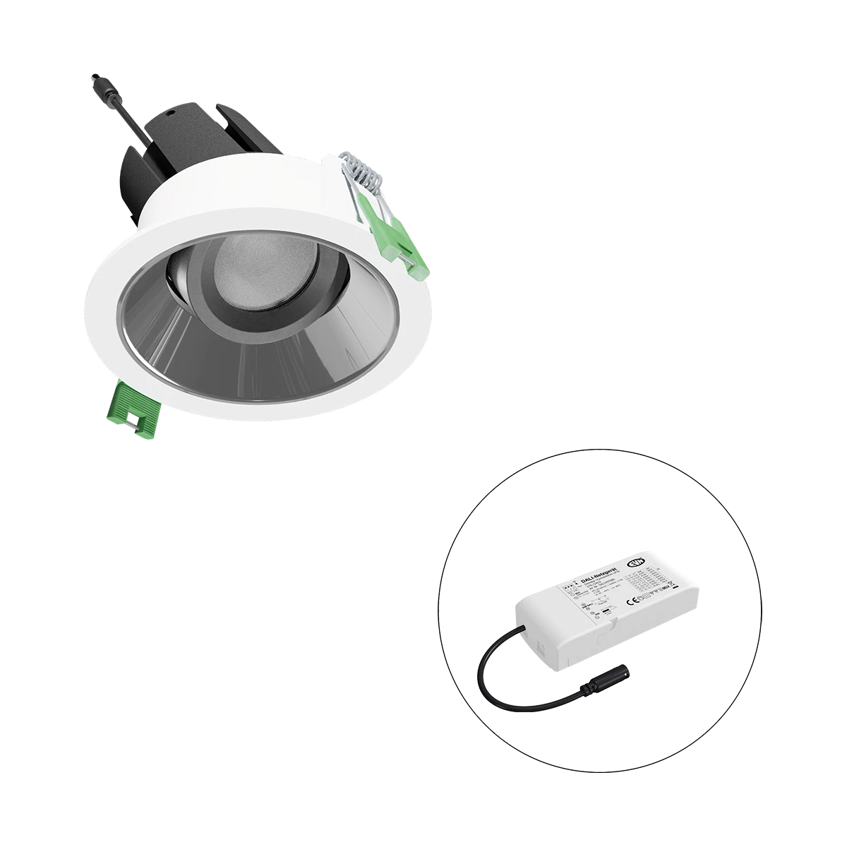 Mit der COB-LED Deckeneinbauleuchte lassen sich vielfältige Anwendungen im Innenbereich, wie z. B. Effektbeleuchtung, Raumbeleuchtung, Akzentuierte Beleuchtung und vieles mehr realisieren. Zusätzliche Kosten für Leuchtmittel entfallen bei dieser Leuchte, da die Leistung von einem fest verbauten LED-Chip geliefert wird. Da im Lieferumfang das Netzgerät bereits enthalten ist, fallen auch hierfür keine zusätzlichen Kosten an. Die Leuchte ist mit diesem Reflektor um 30° schwenkbar. Gehäusefarbe ähnlich RAL9003. Weitere Merkmale: Farbwiedergabeindex CRI92, Bemessungslebensdauer L90B10 bei 50000h.
