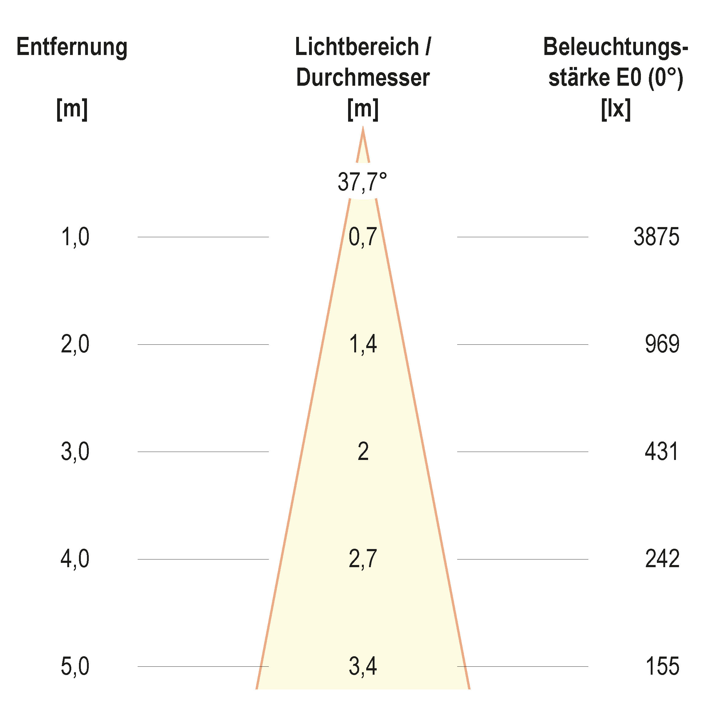 | Ausstrahlungswinkel (Bereich) | mediumstrahlend 21-40° |