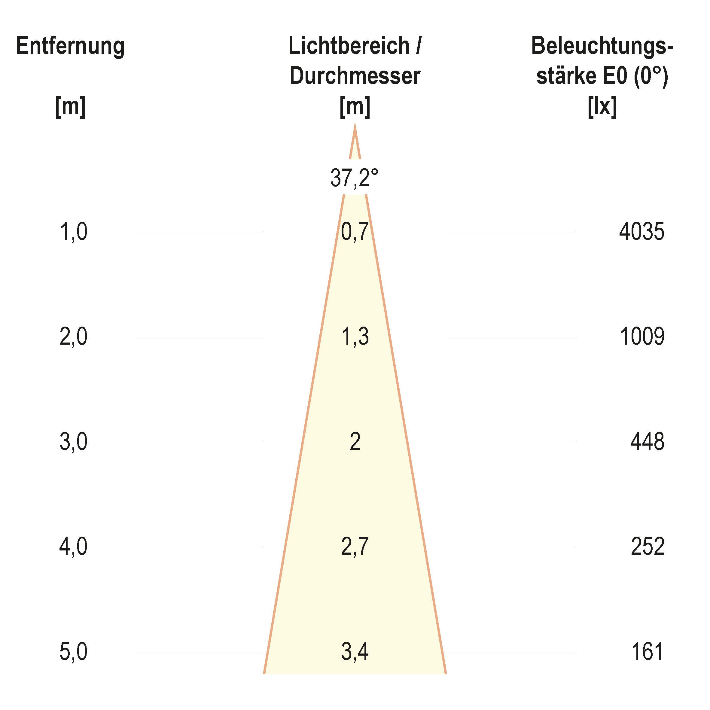 | Ausstrahlungswinkel (Bereich) | mediumstrahlend 21-40° |