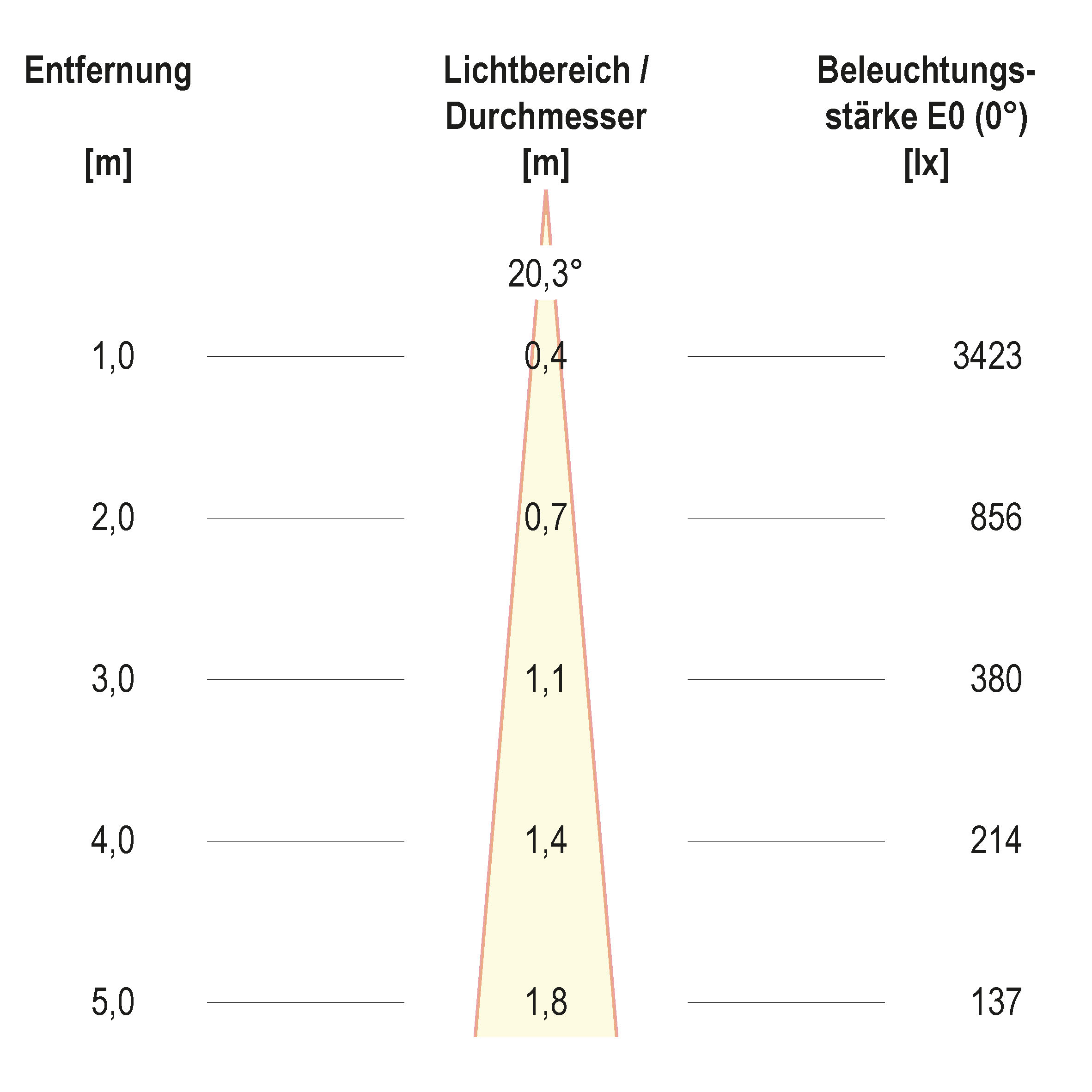 | Ausstrahlungswinkel (Bereich) | engstrahlend 11-20° |