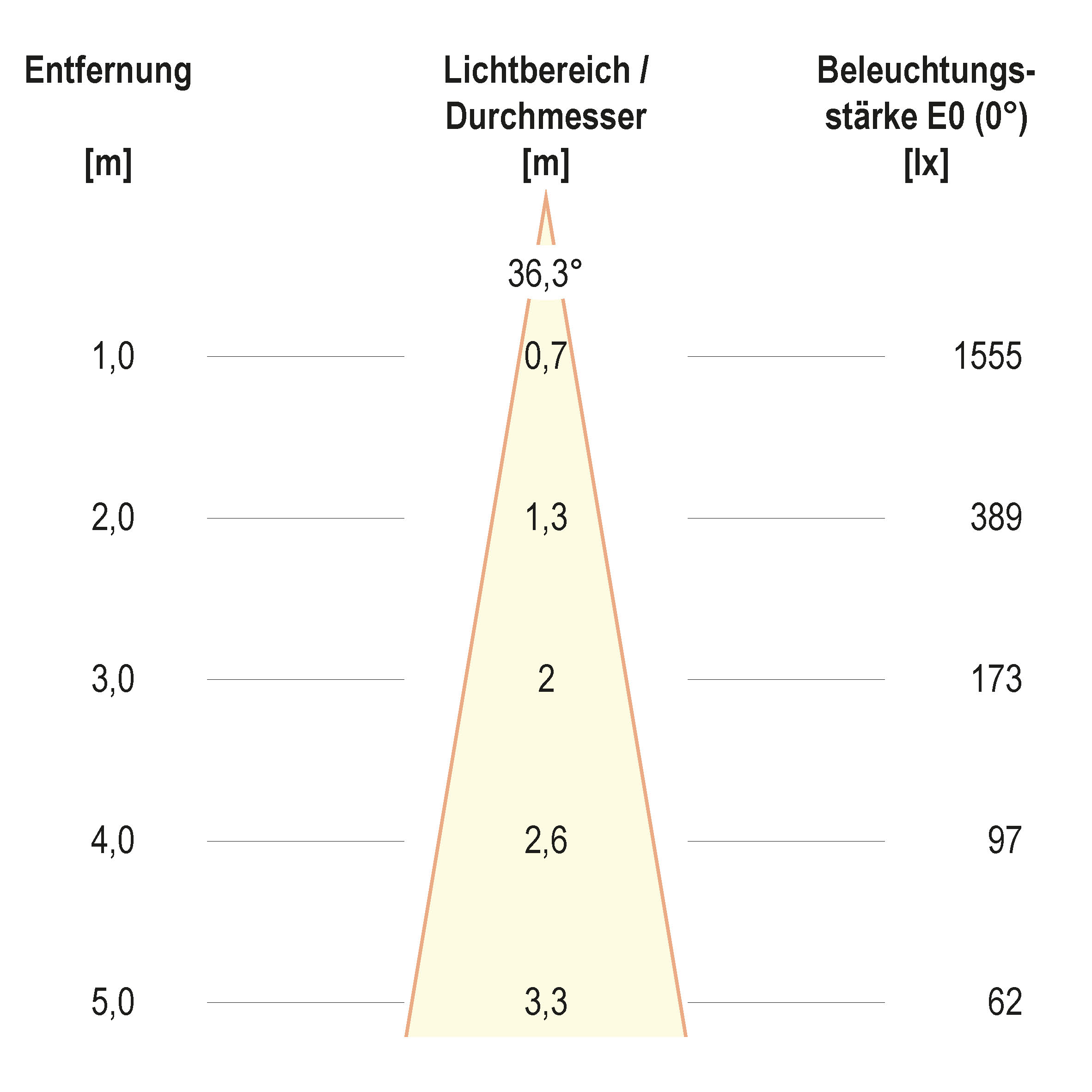 | Ausstrahlungswinkel (Bereich) | mediumstrahlend 21-40° |