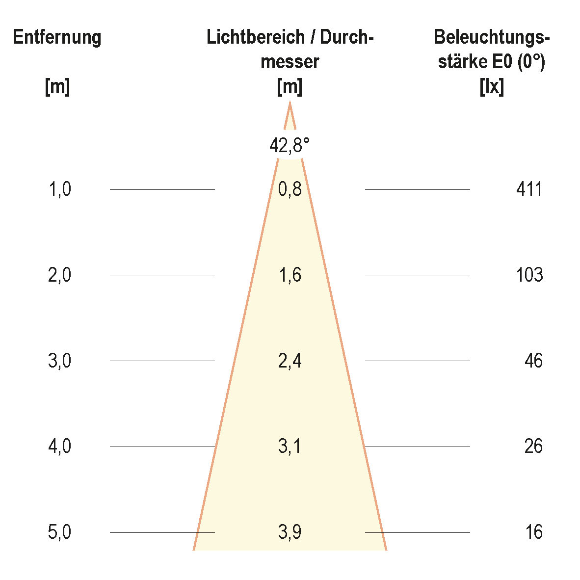 | Ausstrahlungswinkel (Bereich) | mediumstrahlend 21-40° |