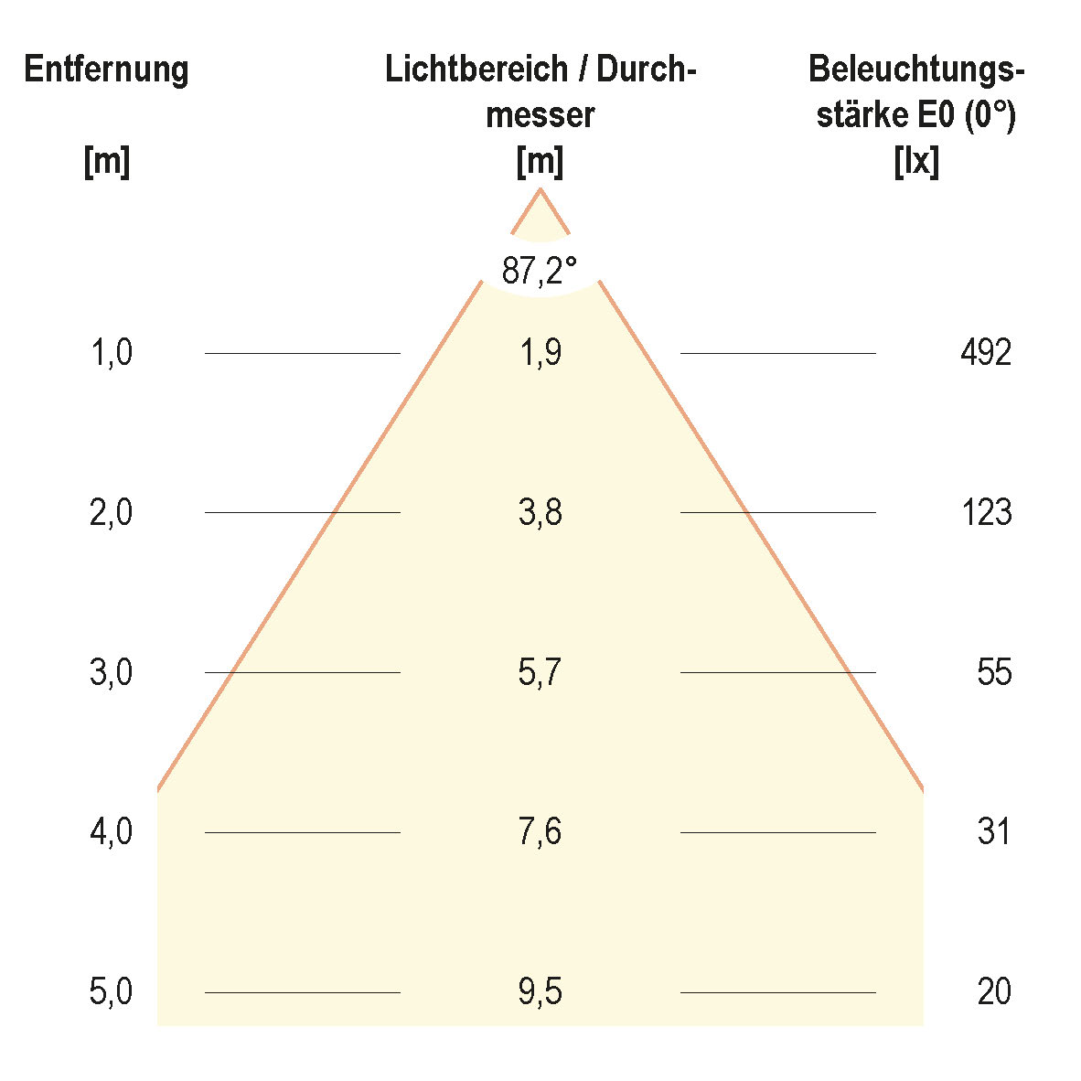 | Ausstrahlungswinkel (Bereich) | extrem breitstrahlend >80° |