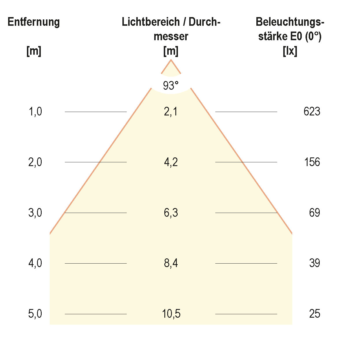 | Ausstrahlungswinkel (Bereich) | extrem breitstrahlend >80° |