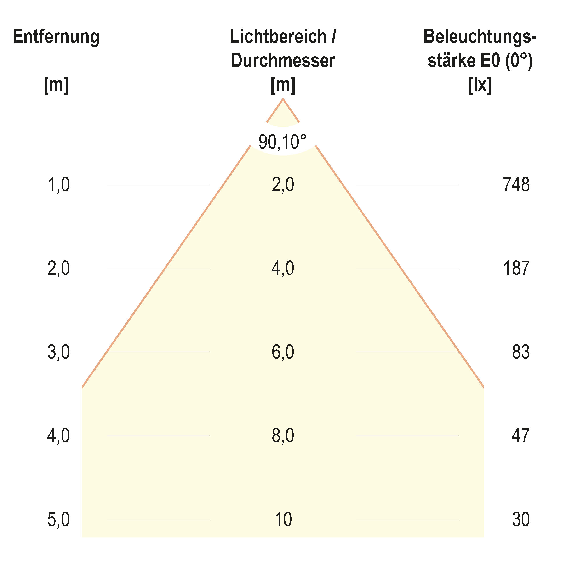 | Ausstrahlungswinkel (Bereich) | extrem breitstrahlend >80° |