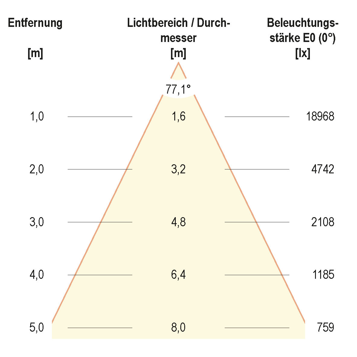 | Ausstrahlungswinkel (Bereich) | extrem breitstrahlend >80° |