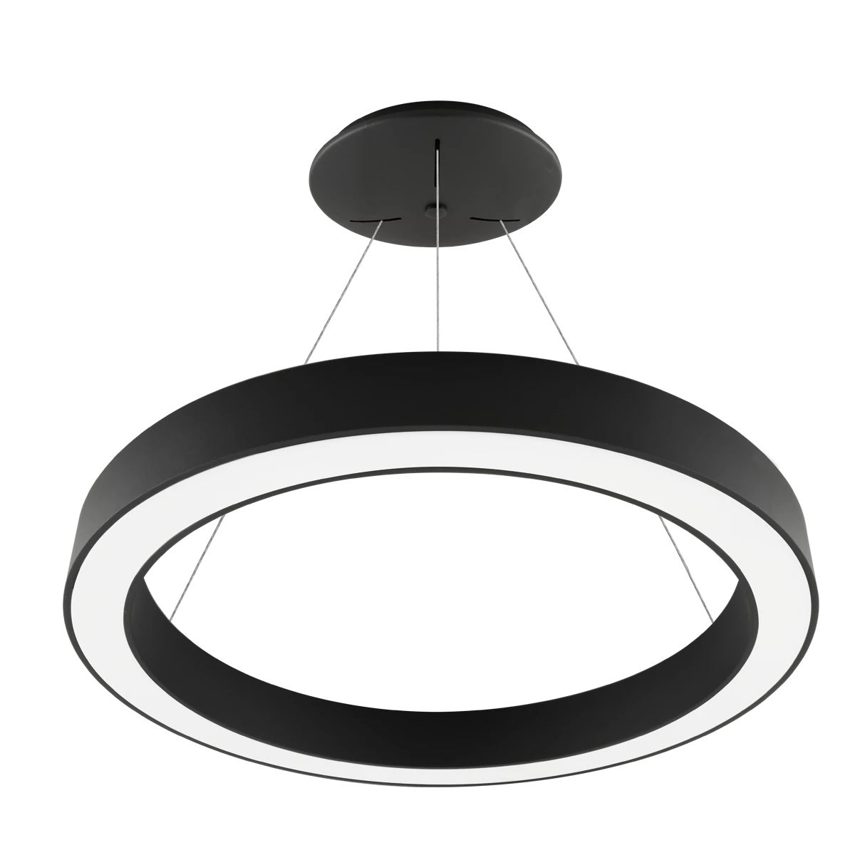 LED Pendelleuchte für verschiedene Anwendungsbereiche, wie z. B. flächendeckende, aber auch effektvolle Beleuchtungen in Flur, Wohnzimmer, Büro und vieles mehr. Durch den großflächigen Lichtaustritt entsteht immer eine sehr homogene Ausleuchtung. Mittels Schalter kann eine von zwei möglichen Farbtemperaturen eingestellt werden. Die möglichen Lumen unter Berücksichtigung der jeweiligen Farbtemperaturen sind: 3000K (3773lm) und 4000K (3981lm). Die Kabel der Seilabhängung sind 2,50m lang. Die Leuchte kann auch mit einer Eingangsspannung von 176-280V/DC betrieben werden. Protokoll: DT6, DALI2, Push-dim. L80B20 bei 50000h.