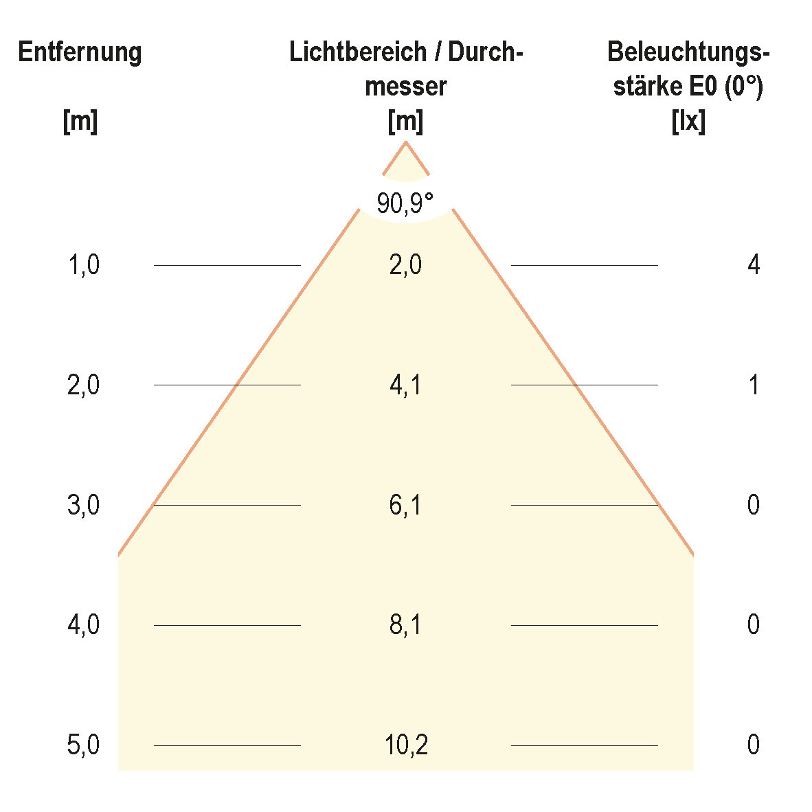 | Ausstrahlungswinkel (Bereich) | breitstrahlend 41-80° |