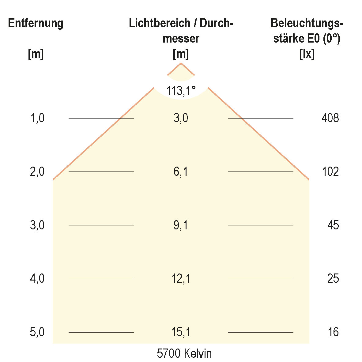 | Ausstrahlungswinkel (Bereich) | extrem breitstrahlend >80° |