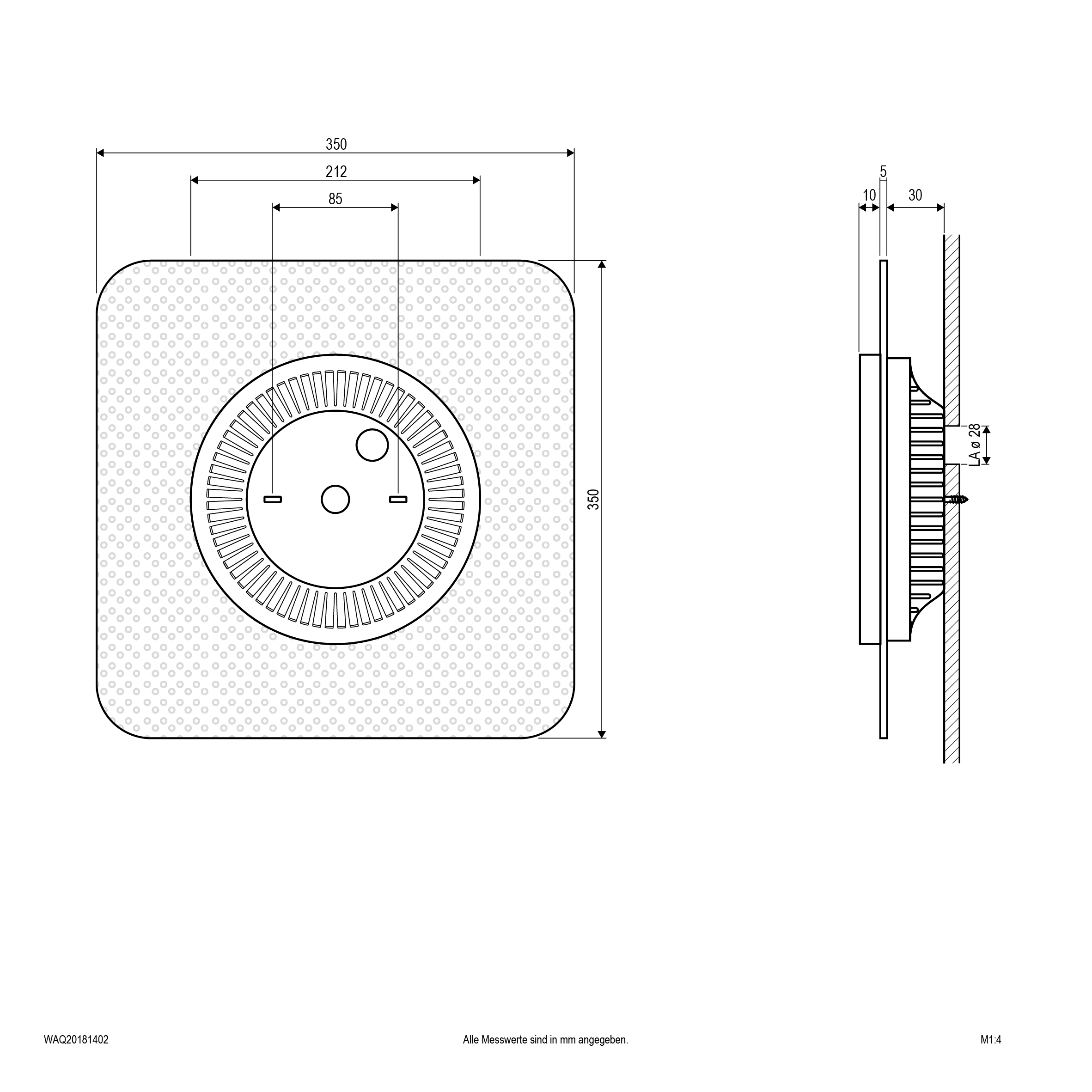 | Abmessung (LxBxH) | 350 x 350 x 45 mm |