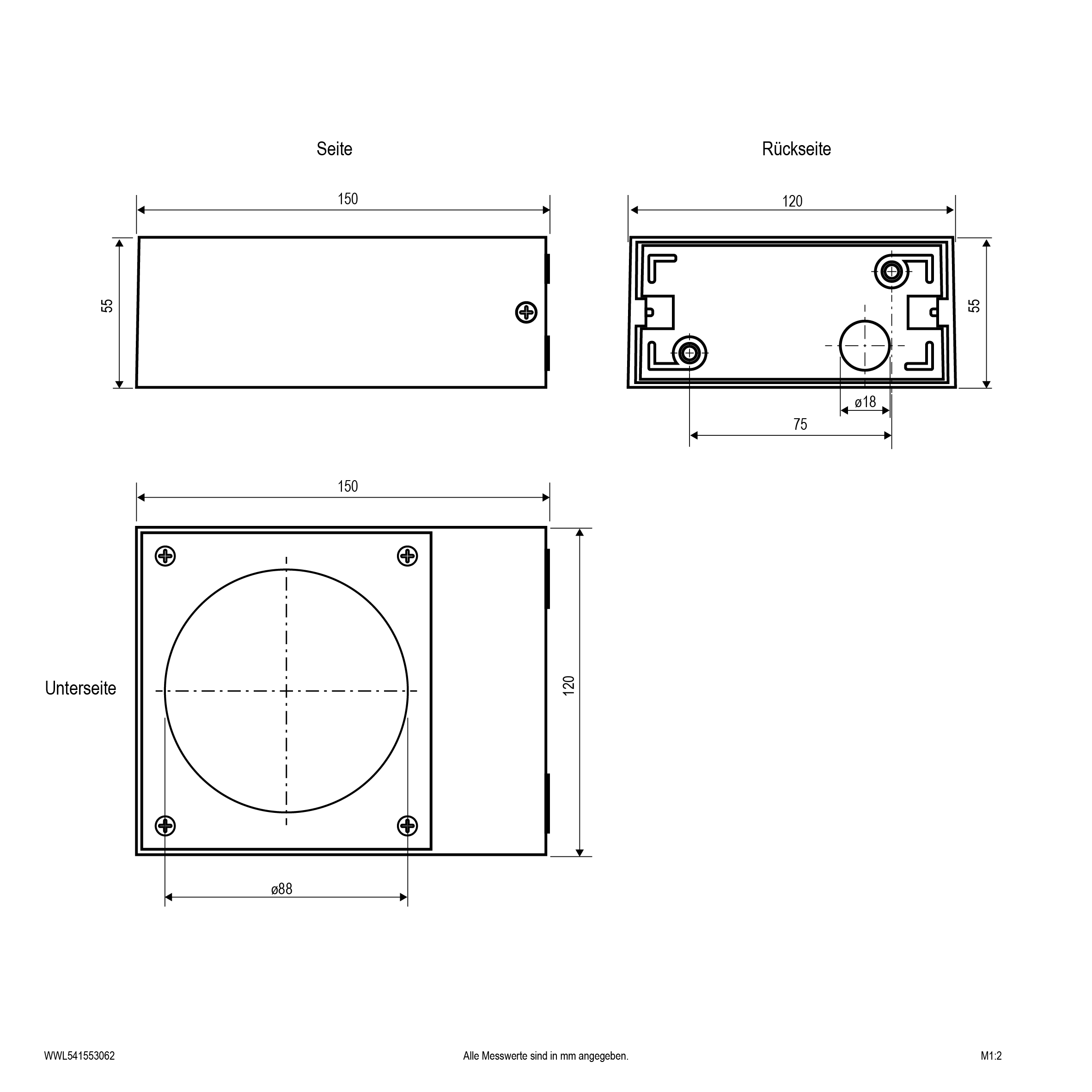 | Abmessung (LxBxH) | 150 x 120 x 55 mm |