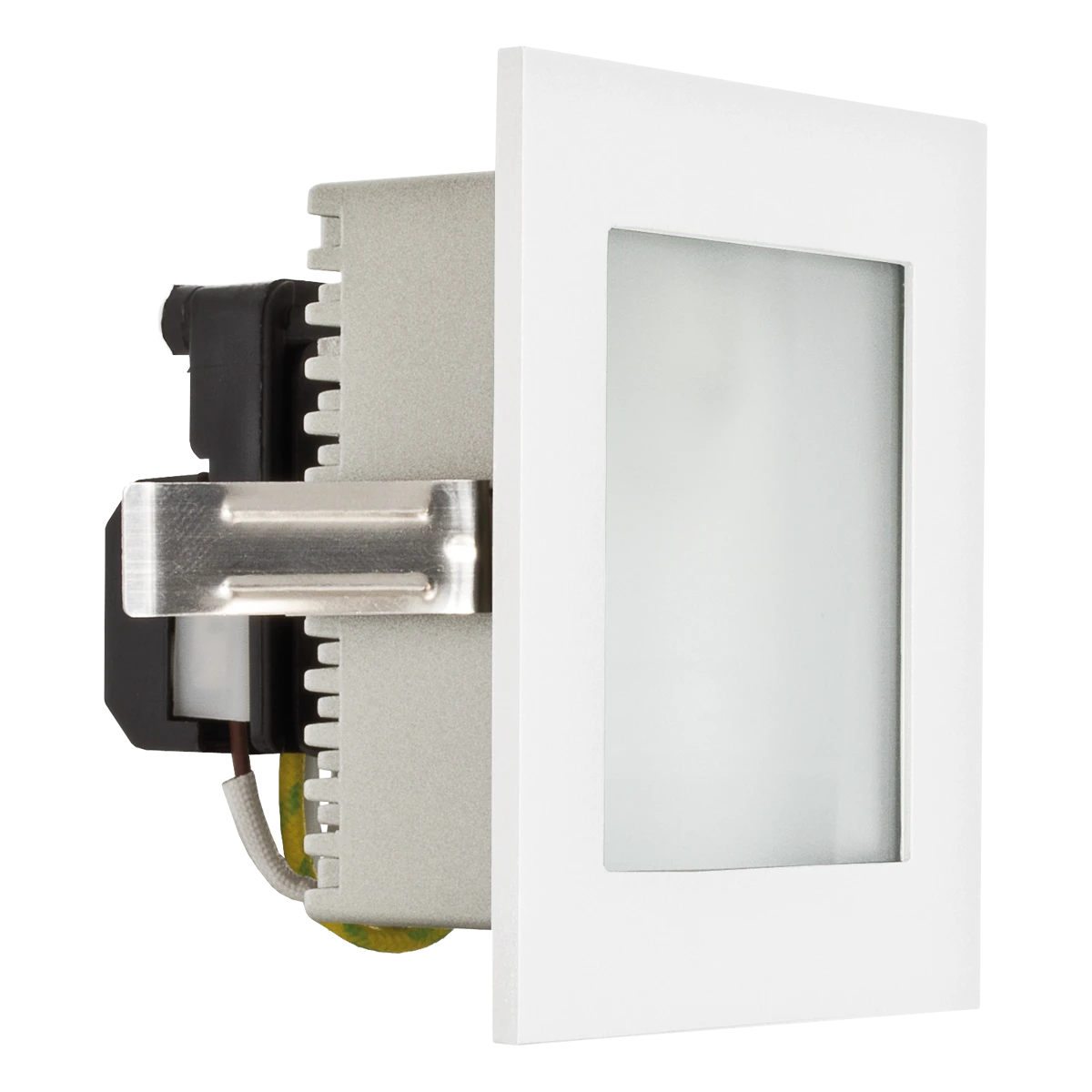 Wandeinbauleuchte für die verschiedensten Anwendungen im Innenbereich. Um einen Blendeffekt zu vermeiden, ist die Leuchte mit einer opalen Glasabdeckung versehen. Zusätzlich zu den Spannfedern, kann die Leuchte auch mit zwei Schrauben fixiert werden, wobei die Schraubenköpfe von der Abdeckung verdeckt werden. Es dürfen Leuchtmittel bis max. 25W in der Leuchte betrieben werden. Bei Verwendung des optional erhältlichen Einputztopfs, muss die Rückseitig angebrachte Zugentlastung versetzt werden, wobei darauf zu achten ist dass die Erdung am Leuchtenkörper angeschlossen bleibt.