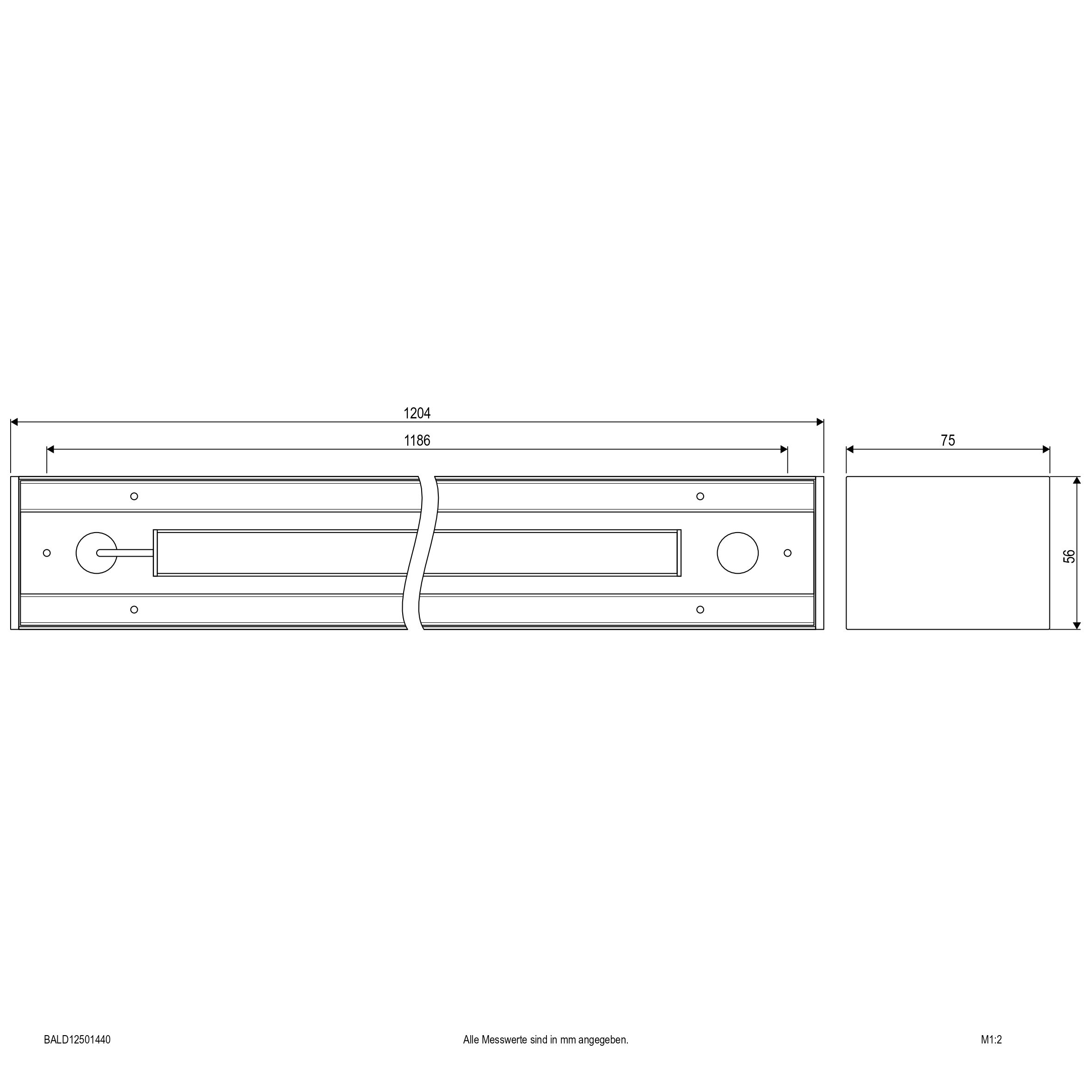 | Abmessung (LxBxH) | 1204 x 56 x 75 mm |
