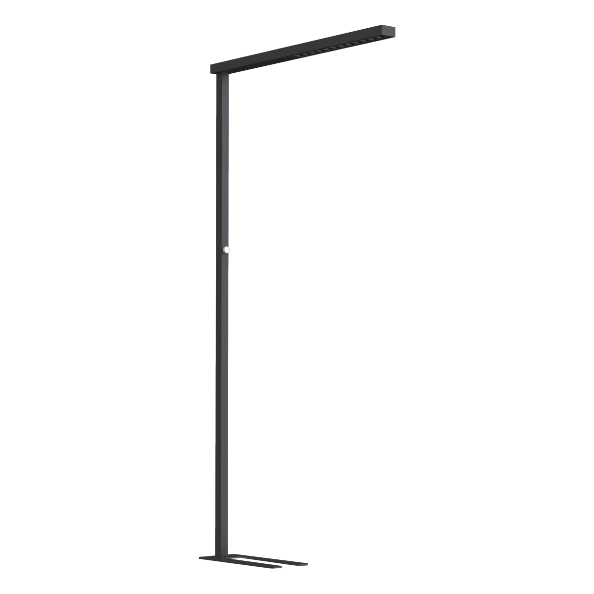 Die flackerfreie LED-Stehleuchte kann für Einzel- und Doppelarbeitsplätze eingesetzt werden. Geschaltet und gedimmt wird die Leuchte über den im Standrohr integrierten Drehdimmer, wobei das up- und downlight immer synchron gedimmt werden. Die Leuchte besteht aus Aluminium, während die Grundplatte für einen sicheren Stand aus Stahl gefertigt ist. Dank der flachen Grundplatte ist eine platzsparende Positionierung an Büromöbeln möglich. Technische Daten: Lichtfarbe up/down: 4000K, Leistung: up/down: 38W/20W, Lumen: up/down: 3600lm/2725lm, Blendwert: UGR kleiner 19, Abstrahlwinkel: up/down: 110°/75°, ta: -20 - 45°C, Zuleitung: 1,50m inkl. Schutzkontaktstecker, Farbe: ähnlich RAL9005.