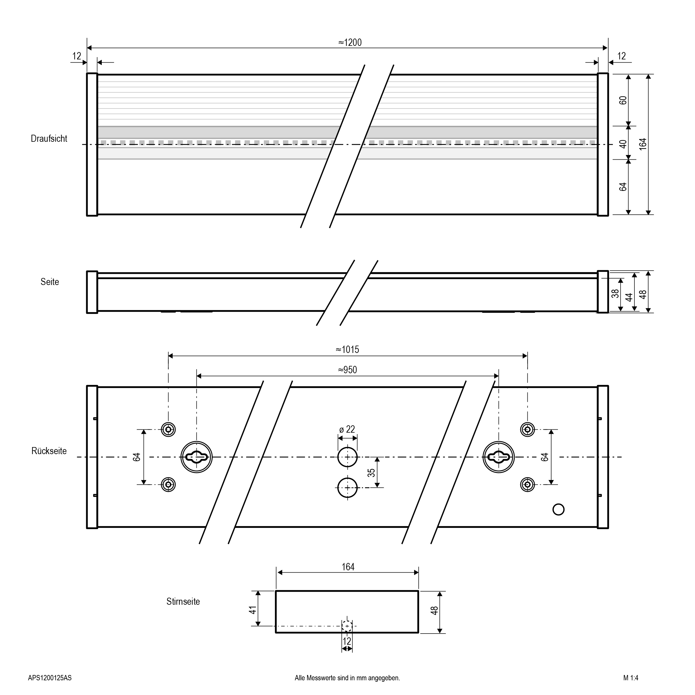 | Abmessung (LxBxH) | 1200 x 164 x 48 mm |