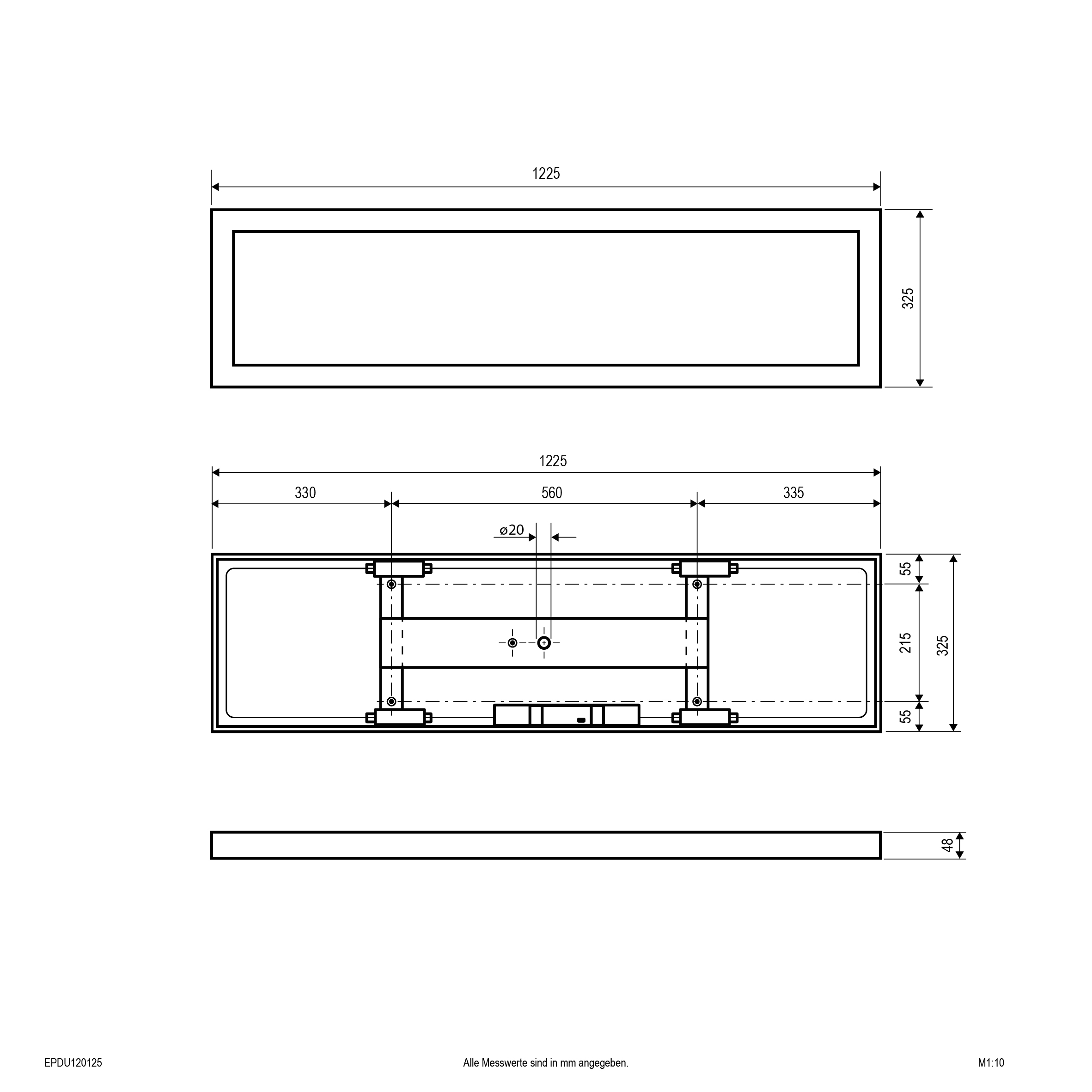 Abmessung (LxBxH)1225 x 325 x 48 mm