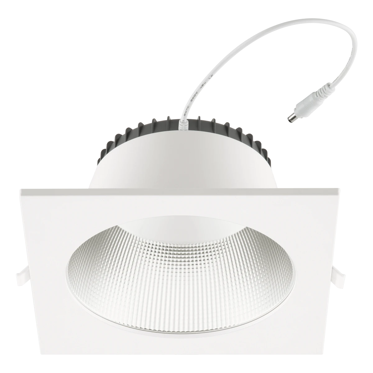 Mit der LED Deckeneinbauleuchte lassen sich, dank der hohen Lichtausbeute, auch anspruchsvolle Beleuchtungsaufgaben problemlos realisieren. Die Leuchte kann auch über eine Zentralbatterie betrieben werden, mit einer Eingangsspannung von 176-250V/DC. Sie erfüllt die DIN EN60598-2-22:2014 und bestätigt die Zulassung im Bereich der Notbeleuchtung. Mit dem rückseitig angebrachten Schalter kann eine von drei möglichen Farbtemperaturen eingestellt werden. Die möglichen Farbtemperaturen und daraus resultierenden Lumen sind: 3000K (4165lm), 4000K (4445lm) und 5700K (4305lm). Da die Leuchte inkl. externen Netzgerät geliefert wird, fallen hierfür keine zusätzlichen Kosten an.