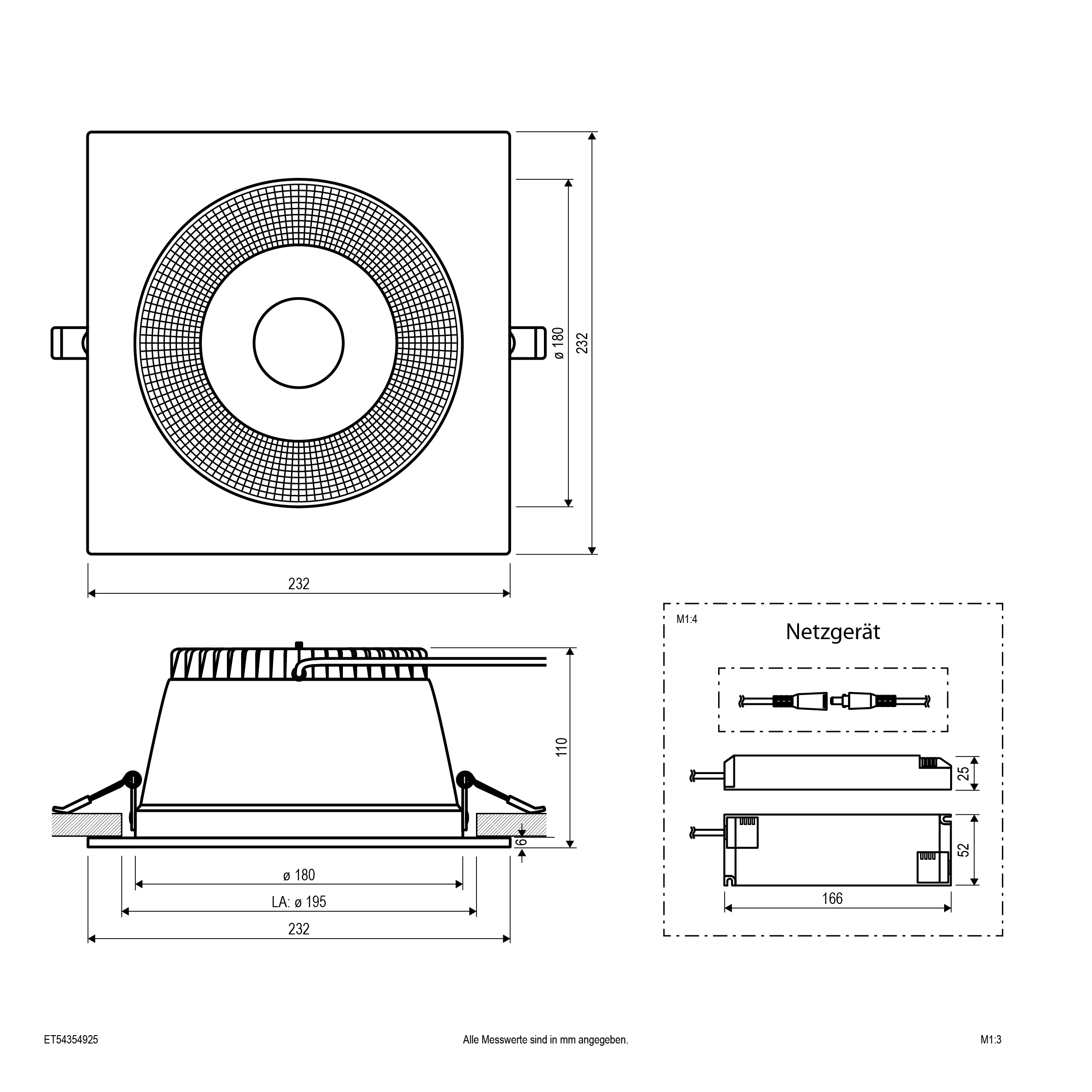 | Einbaudurchmesser – (min./max.) | 195 - 195 |
