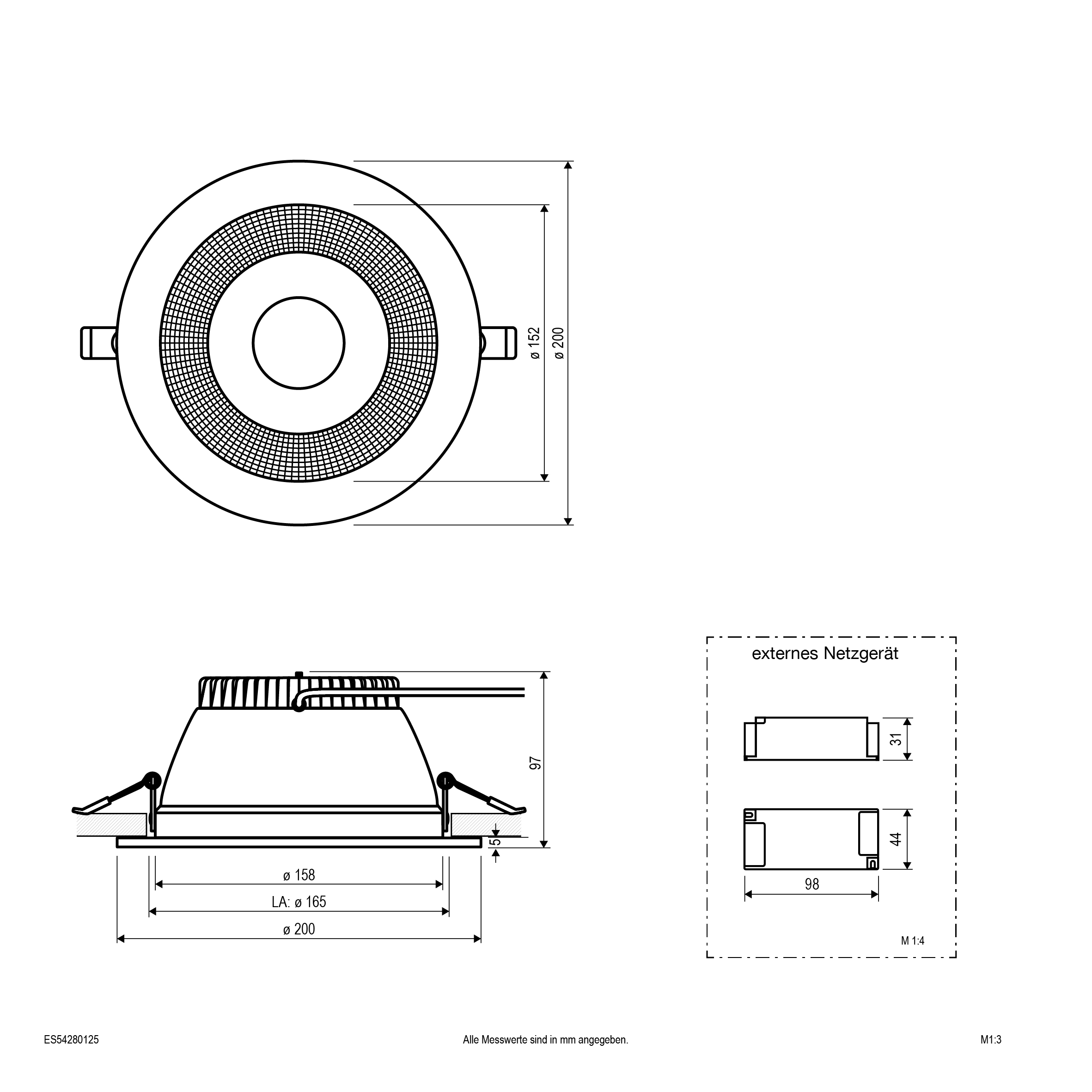 Mit der LED Deckeneinbauleuchte lassen sich, dank der hohen Lichtausbeute, auch anspruchsvolle Beleuchtungsaufgaben problemlos realisieren. Die Leuchte kann auch über eine Zentralbatterie betrieben werden, mit einer Eingangsspannung von 176-250V/DC. Sie erfüllt die DIN EN60598-2-22:2014 und bestätigt die Zulassung im Bereich der Notbeleuchtung. Mit dem rückseitig angebrachten Schalter kann eine von drei möglichen Farbtemperaturen eingestellt werden. Außerdem kann über einen weiteren Schalter am Netzgerät die Leistung variabel eingestellt werden. Da die Leuchte inkl. externen Netzgerät geliefert wird, fallen hierfür keine zusätzlichen Kosten an.