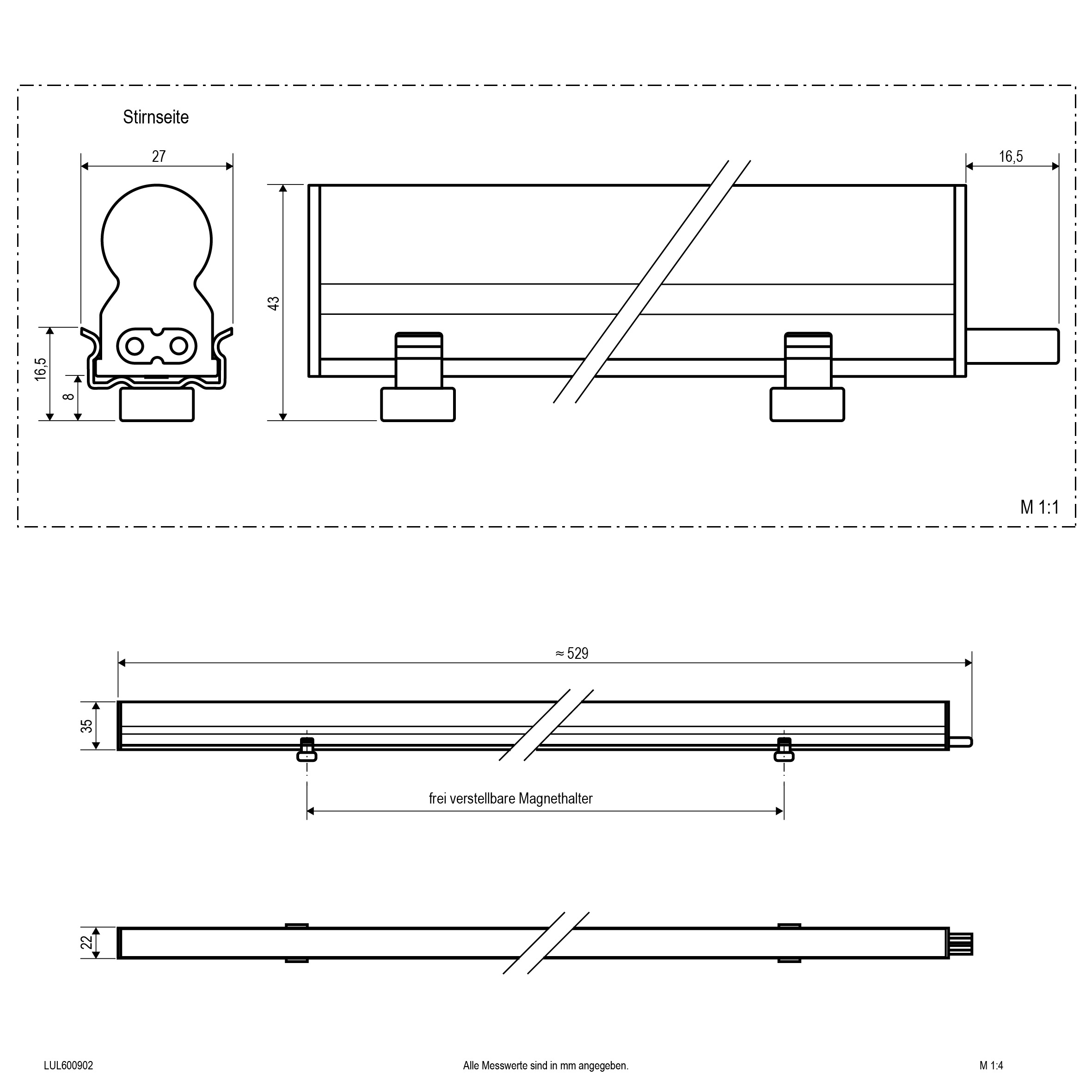 | Abmessung (LxBxH) | 529 x 22 x 35 mm |