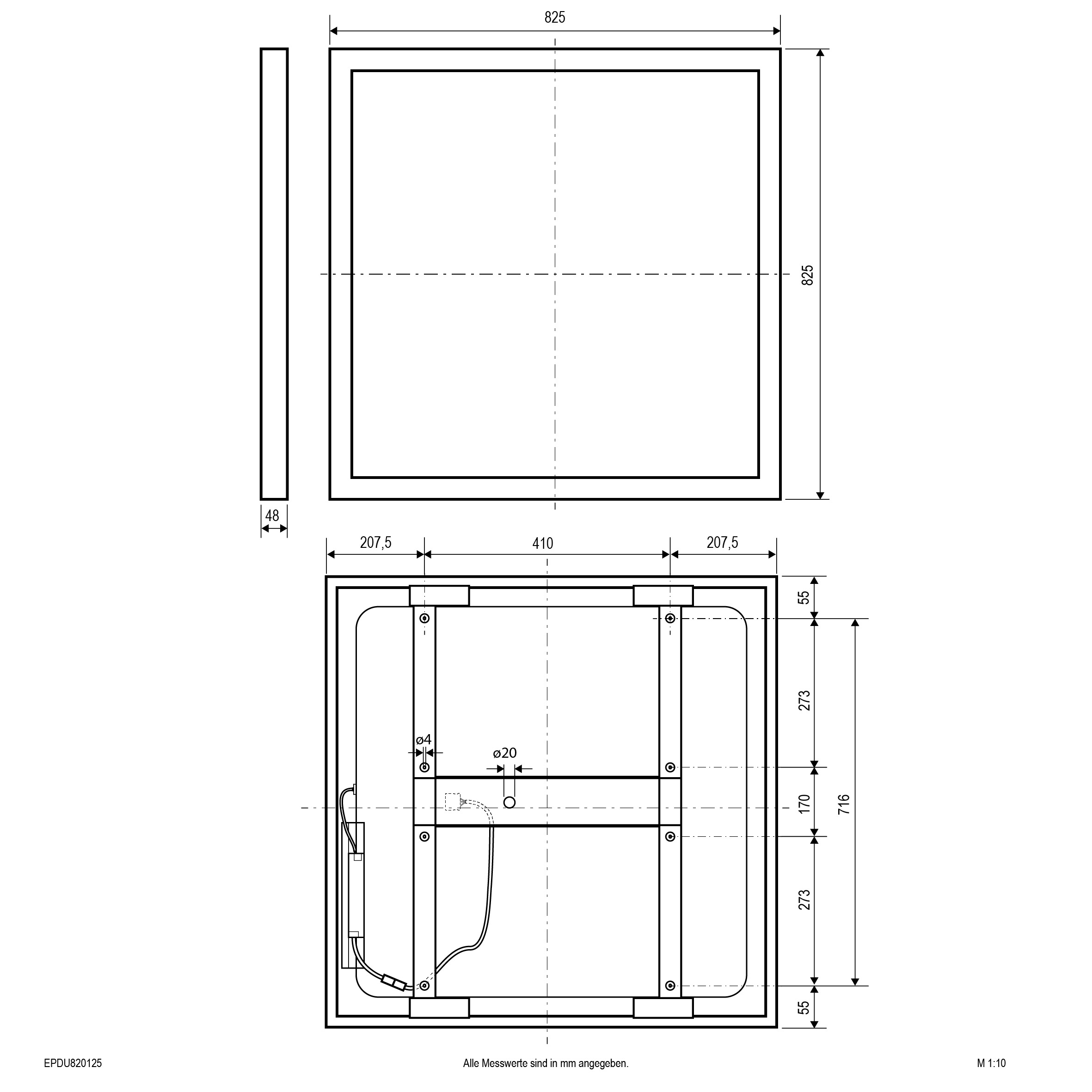 | Abmessung (LxBxH) | 825 x 825 x 48 mm |