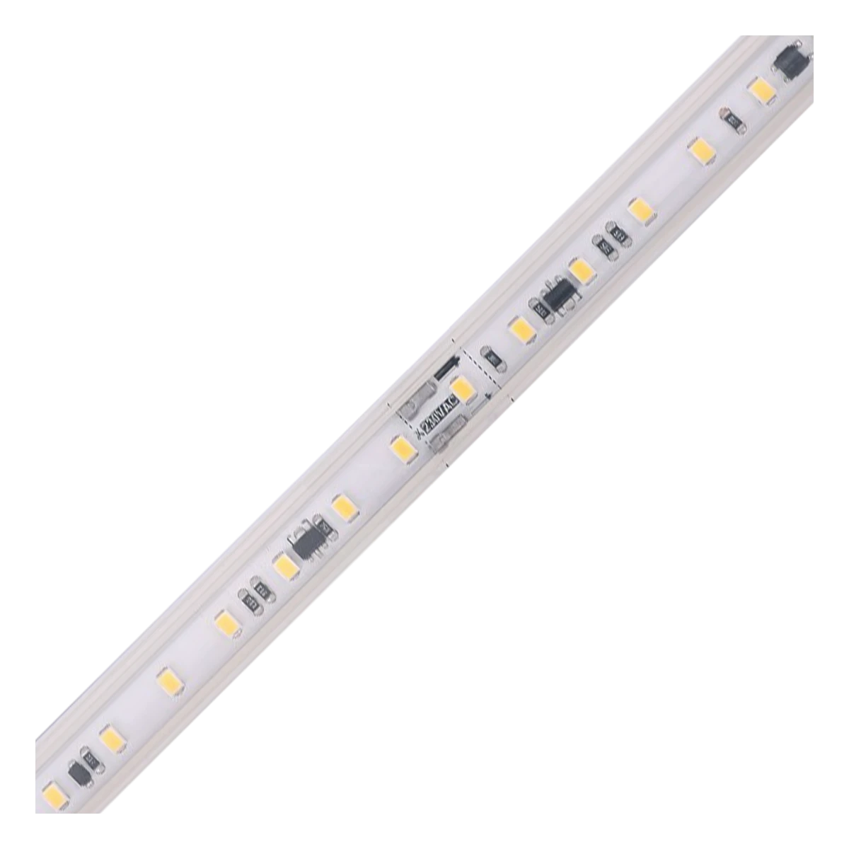 Kürzbarer und flexibler 230V LED-Strip mit IC-Stromkonstanter. Der Strip ist mit einer 0,5m langen Anschlussleitung mit Konturenstecker versehen so dass keine Netzgeräte benötigt werden. Durch die IC´s kann eine Länge bis max. 50m am Stück betrieben werden. Auch ist der Einsatz von wärmeleitenden Untergründen nicht zwingend nötig. Somit lässt sich der Strip für zahlreiche Beleuchtungsanwendungen einsetzen. Sofern der Strip gekürzt wird, lassen sich die Teilstücke mittels separat erhältlicher Anschlussleitung (IC65230ASL) unkompliziert wieder mit einem Stecker versehen. Außerdem ist der Strip UV beständig. ta: -20°C - 45°C.