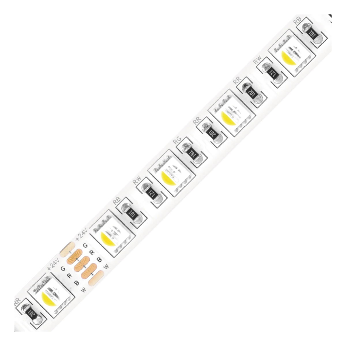 Der LED-Strip kann in jeder Wunschlänge (Angabe in Meter), bis maximal 10m, unter Beachtung des Teilungsmaßes von 100mm konfektioniert werden. Die maximale Einspeiselänge bei einseitiger Einspeisung beträgt 5m. Der konfektionierte Strip wird standardmäßig einseitig mit einer 0,5m langen Anschlussleitung (Kabelquerschnitt: 0,3mm²) ausgeliefert. Wichtig: Um ein Überhitzen des Strips zu vermeiden, darf dieser nur auf wärmeleitenden Untergründen verbaut werden, vorzugsweise auf bzw. in Aluminiumprofilen. Die weiß-Farbtemperatur beträgt 3000K. Die maximale Lichtausbeute beträgt 448lm im RGB-Modus und 338lm im Weiß-Modus.