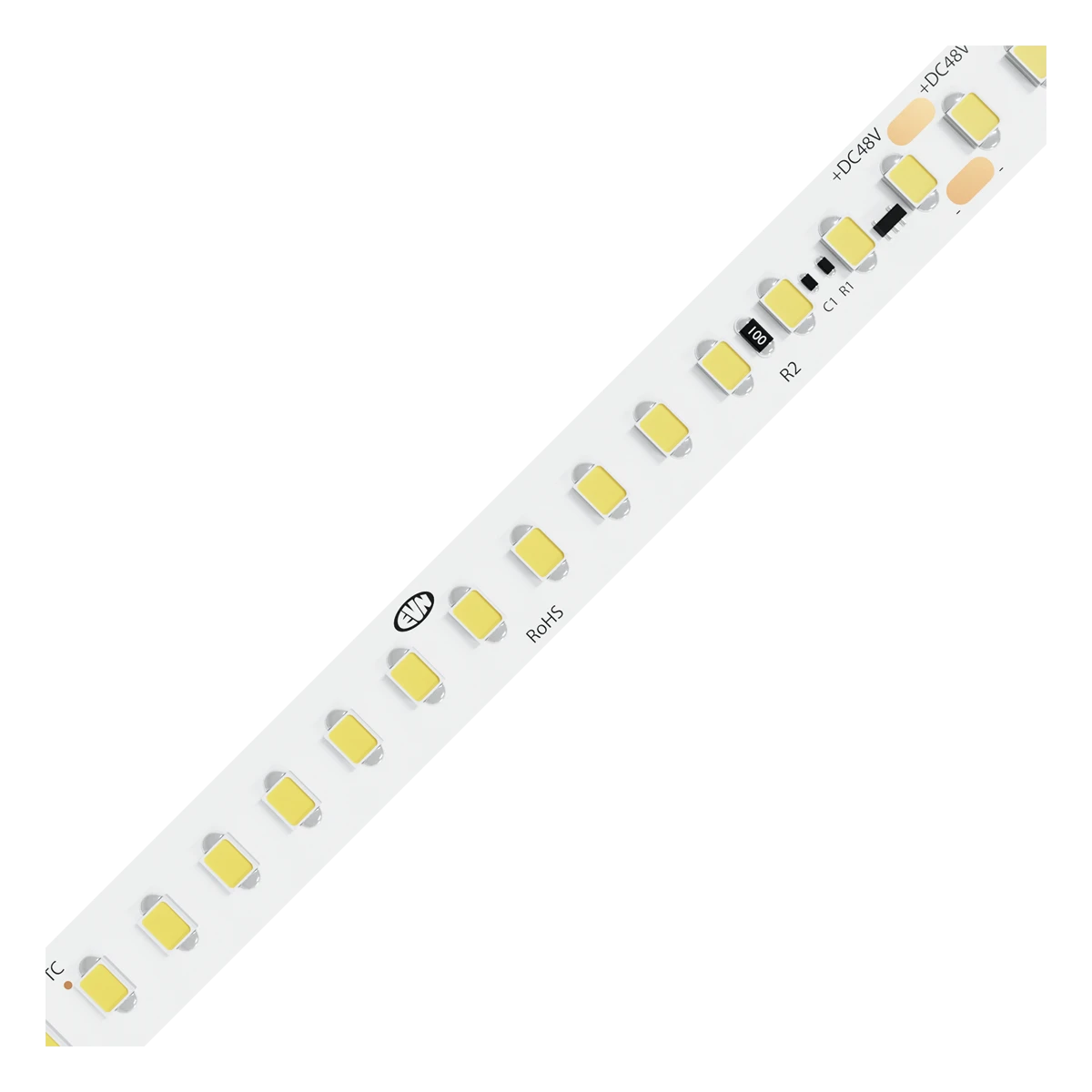 Der LED-Strip kann in jeder Wunschlänge (Angabe in Meter), bis maximal 50m, unter Beachtung des Teilungsmaßes von 100mm konfektioniert werden. Die maximale Einspeiselänge bei einseitiger Einspeisung beträgt 8m. Der konfektionierte Strip wird standardmäßig einseitig mit einer 0,5m langen Anschlussleitung (Kabelquerschnitt: 0,5mm²) ausgeliefert. Wichtig: Um ein Überhitzen des Strips zu vermeiden, darf dieser nur auf wärmeleitenden Untergründen verbaut werden, vorzugsweise auf bzw. in Aluminiumprofilen. Exaktes Binning erlaubt Farbtoleranzen von maximal +/-50K.