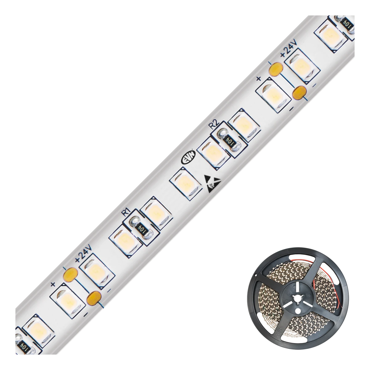 Kürzbarer und flexibler LED-Strip mit hochleistungs-LED-Chips und Strom-Konstanter. Die auf diesem Strip zusätzlich verbauten IC’s (Strom-Konstanter) senken den Energieverbrauch im Vergleich zu den anderen super-bright-LED-Strips. Da der Strip mit 48V/DC betrieben wird können Längen bis zu max. 30m bei einseitiger Einspeisung betrieben werden. Dadurch lassen sich die verschiedensten Anwendungen, wie z. B. direkte oder indirekte Beleuchtung für Wohnzimmer, Schlafzimmer, Flur, etc. noch energiesparender umsetzen. Wichtig: Um ein überhitzen des Strips zu vermeiden, darf dieser nur auf wärmeleitenden Untergründen verbaut werden, vorzugsweise auf bzw. in Aluminiumprofilen. Der Strip ist außerdem UV-beständig. ta: -20°C - 45°C.