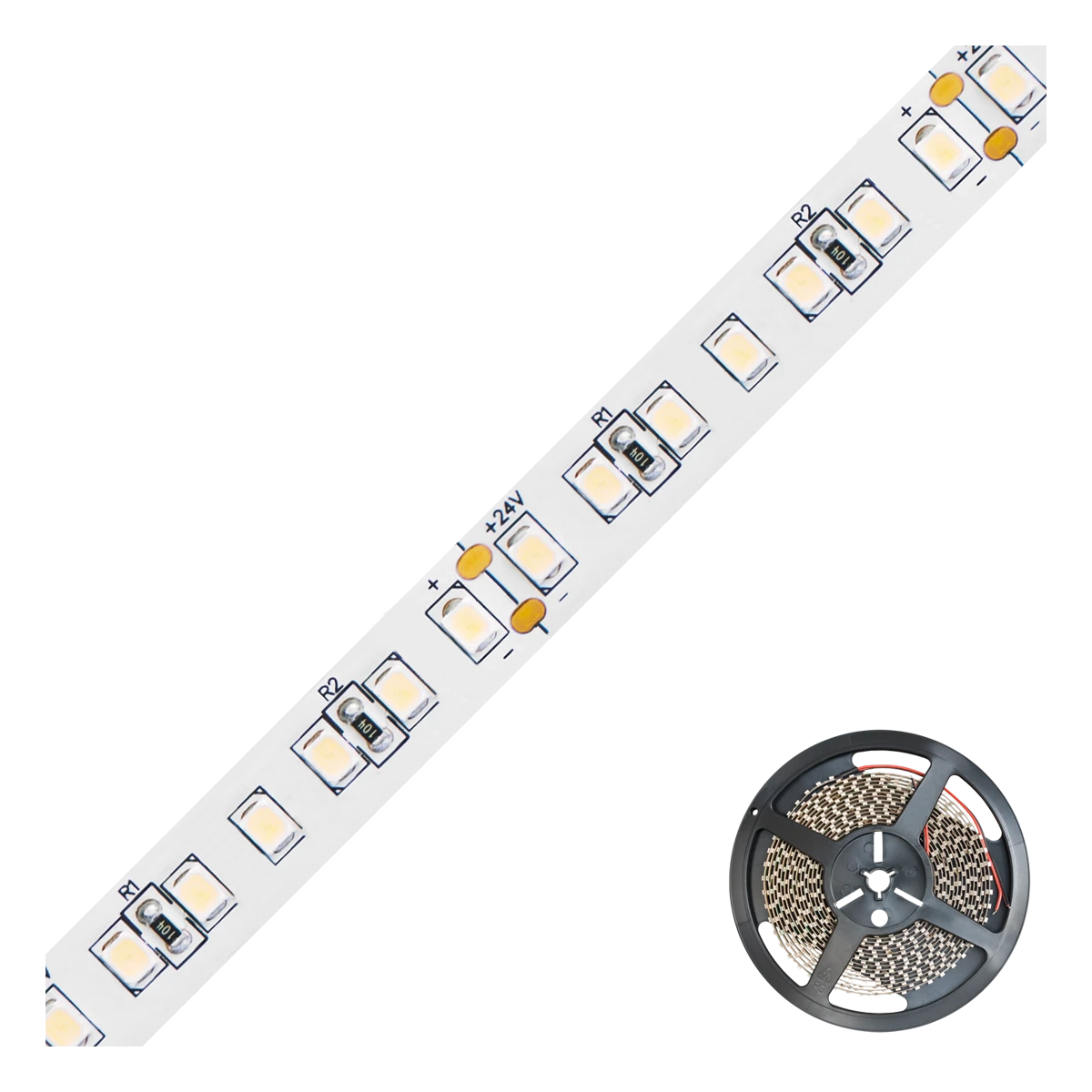 Kürzbarer und flexibler LED-Strip mit hochleistungs-LED-Chips und Strom-Konstanter. Die auf diesem Strip zusätzlich verbauten IC’s (Strom-Konstanter) senken den Energieverbrauch im Vergleich zu den anderen super-bright-LED-Strips. Da der Strip mit 48V/DC betrieben wird können Längen bis zu max. 15m bei einseitiger Einspeisung betrieben werden. Dadurch lassen sich die verschiedensten Anwendungen, wie z. B. direkte oder indirekte Beleuchtung für Wohnzimmer, Schlafzimmer, Flur, etc. noch energiesparender umsetzen. Wichtig: Um ein überhitzen des Strips zu vermeiden, darf dieser nur auf wärmeleitenden Untergründen verbaut werden, vorzugsweise auf bzw. in Aluminiumprofilen. ta: -20°C - 45°C.