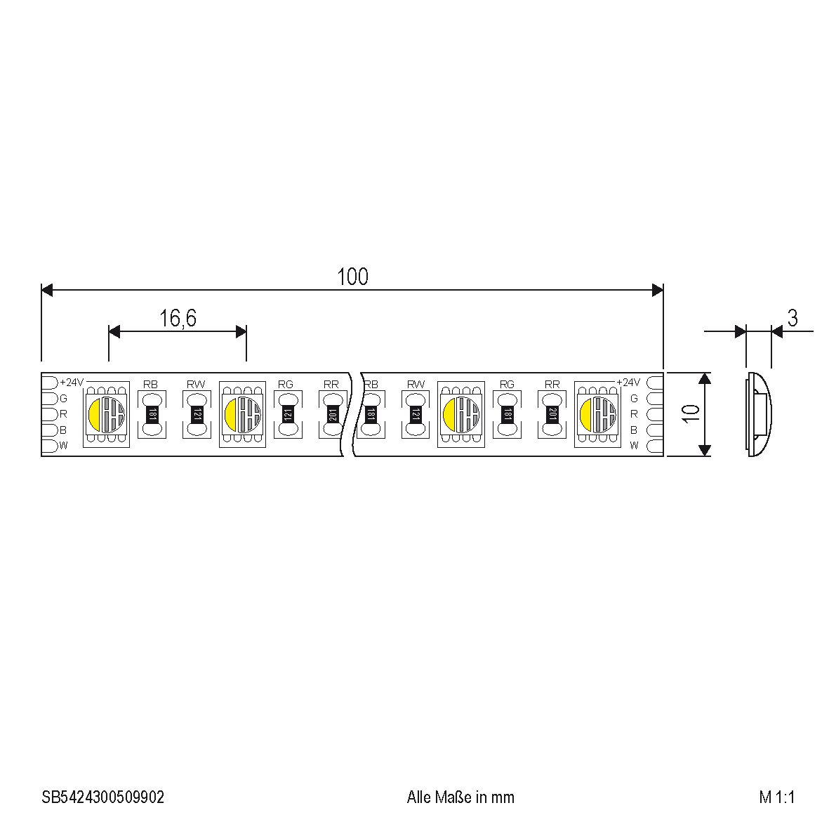 Kürzbarer und flexibler RGBW LED-Strip mit hochleistungs LED-Chips. Bei den verbauten LED-Chips handelt es sich um RGBW-Chips, d. h. für jede Farbe und für weiß besitzen die Chips je eine Brennstelle. Außerdem erreichen die auf diesem Strip verbauten superbright LED-Chips im Vergleich zu herkömmlichen LED-Chips eine deutlich höhere Lichtausbeute bei gleicher Leistungsaufnahme, bzw. vergleichbare Lichtausbeute bei geringerer Leistungsaufnahme. Dadurch sind die Strips perfekt geeignet, um anspruchsvolle Beleuchtungsszenarien umzusetzen. Ganz egal, ob Ambientebeleuchtung, Hauptbeleuchtung, oder eine Kombination aus beidem, z. B. in Wohnzimmer, Schlafzimmer Flur, oder vieles mehr. Der Phantasie sind nahezu keine Grenzen gesetzt. Aufgrund der RGBW LED-Chips sind pro Lichtfarbe insgesamt 300 Brennstellen je 5m-Strip vorhanden. Hierdurch wird im Vergleich zu RGBW-Strips mit herkömmlichen, abwechselnd aufgebrachten LED-Chips, ein deutlich homogeneres Lichtbild erzielt. Wichtig: Um ein überhitzen des Strips zu vermeiden, darf dieser nur auf Wärmeleitenden Untergründen verbaut werden, vorzugsweise in Aluminiumprofilen. Die für den Strip benötigten Steuerungen sind separat erhältlich. Die weiß-Farbtemperatur beträgt 3000K. Die maximale Lichtausbeute beträgt 448lm im RGB-Modus und 388lm im Weiß-Modus.