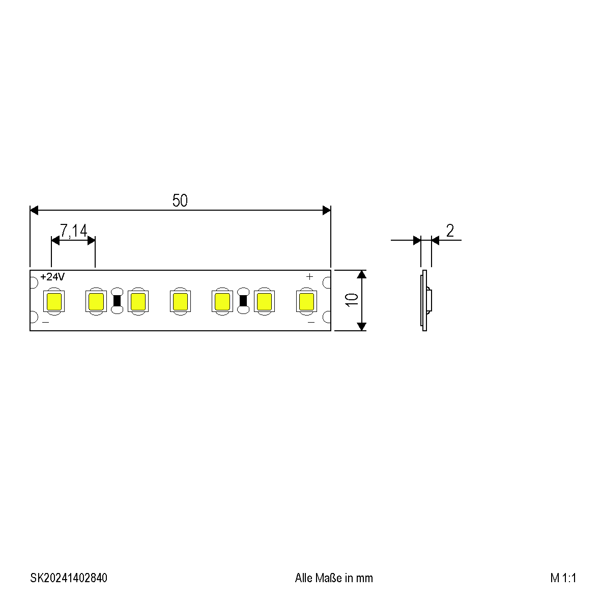 | Abmessung (LxBxH) | 50 x 10 x 2 mm |