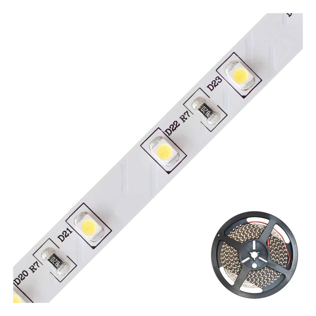 Kürzbarer und flexibler LED-Strip mit hochleistungs LED-Chips. Die auf diesem Strip verbauten superbright LED-Chips erreichen im Vergleich zu herkömmlichen LED-Chips eine deutlich höhere Lichtausbeute bei gleicher Leistungsaufnahme, bzw. vergleichbare Lichtausbeute bei geringerer Leistungsaufnahme. Dadurch lassen sich die verschiedensten Anwendungen, wie z. B. direkte oder indirekte Beleuchtung für Wohnzimmer, Schlafzimmer, Flur, etc. noch Energiesparender umsetzen. Auch Projekte mit gehobenen Ansprüchen bezüglich der Lichtausbeute lassen sich mit diesen Strips realisieren. Wichtig: Um ein überhitzen des Strips zu vermeiden, darf dieser nur auf Wärmeleitenden Untergründen verbaut werden, vorzugsweise in Aluminiumprofilen. Exaktes Binning erlaubt Farbtoleranzen von maximal +/-50K. Die Lichtausbeute beträgt 519lm pro Meter.