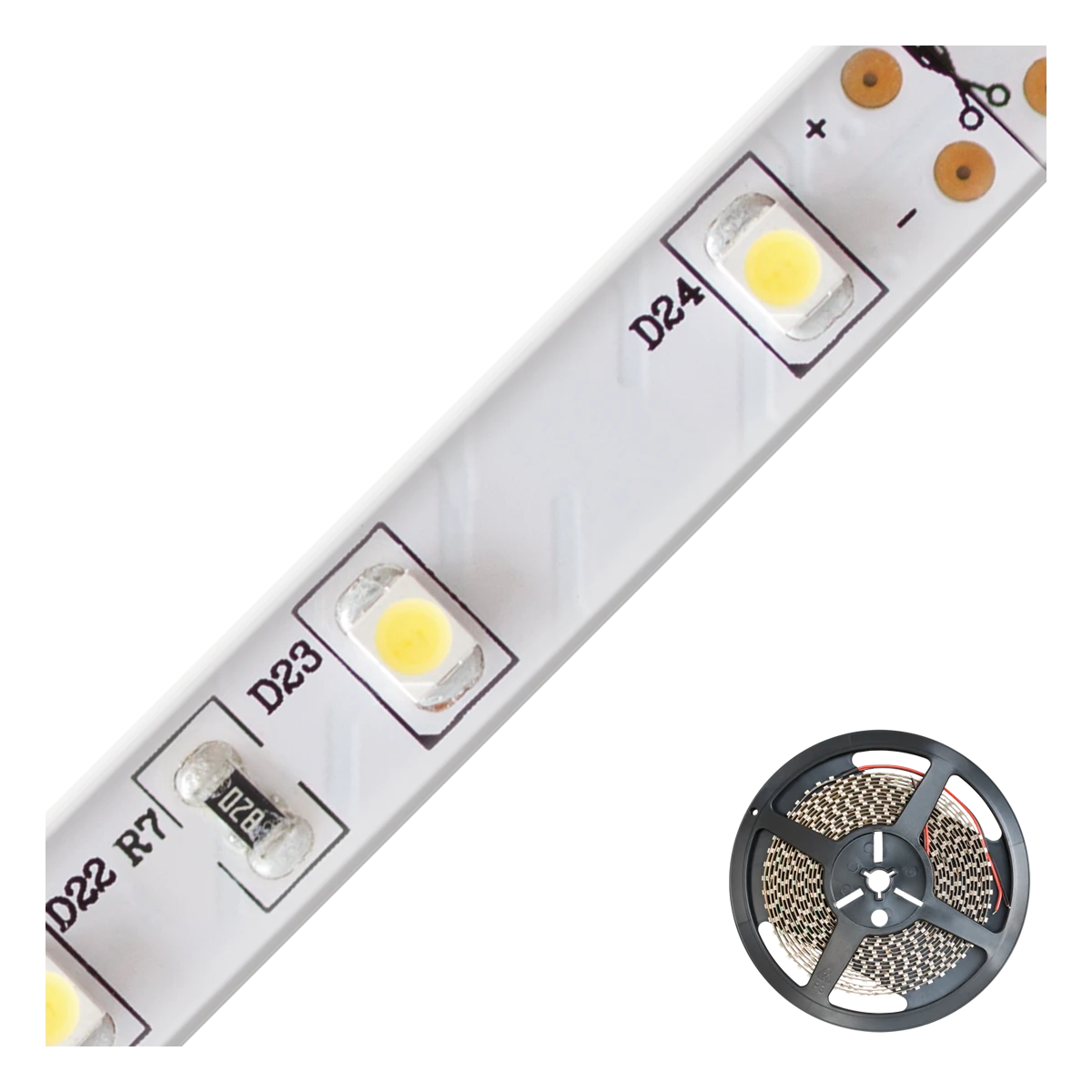 Kürzbarer und flexibler LED-Strip mit hochleistungs LED-Chips. Die auf diesem Strip verbauten superbright LED-Chips erreichen im Vergleich zu herkömmlichen LED-Chips eine deutlich höhere Lichtausbeute bei gleicher Leistungsaufnahme, bzw. vergleichbare Lichtausbeute bei geringerer Leistungsaufnahme. Dadurch lassen sich die verschiedensten Anwendungen, wie z. B. direkte oder indirekte Beleuchtung für Wohnzimmer, Schlafzimmer, Flur, etc. noch Energiesparender umsetzen. Auch Projekte mit gehobenen Ansprüchen bezüglich der Lichtausbeute lassen sich mit diesen Strips realisieren. Wichtig: Um ein überhitzen des Strips zu vermeiden, darf dieser nur auf Wärmeleitenden Untergründen verbaut werden, vorzugsweise in Aluminiumprofilen. Die Lichtausbeute beträgt 461lm pro Meter.
