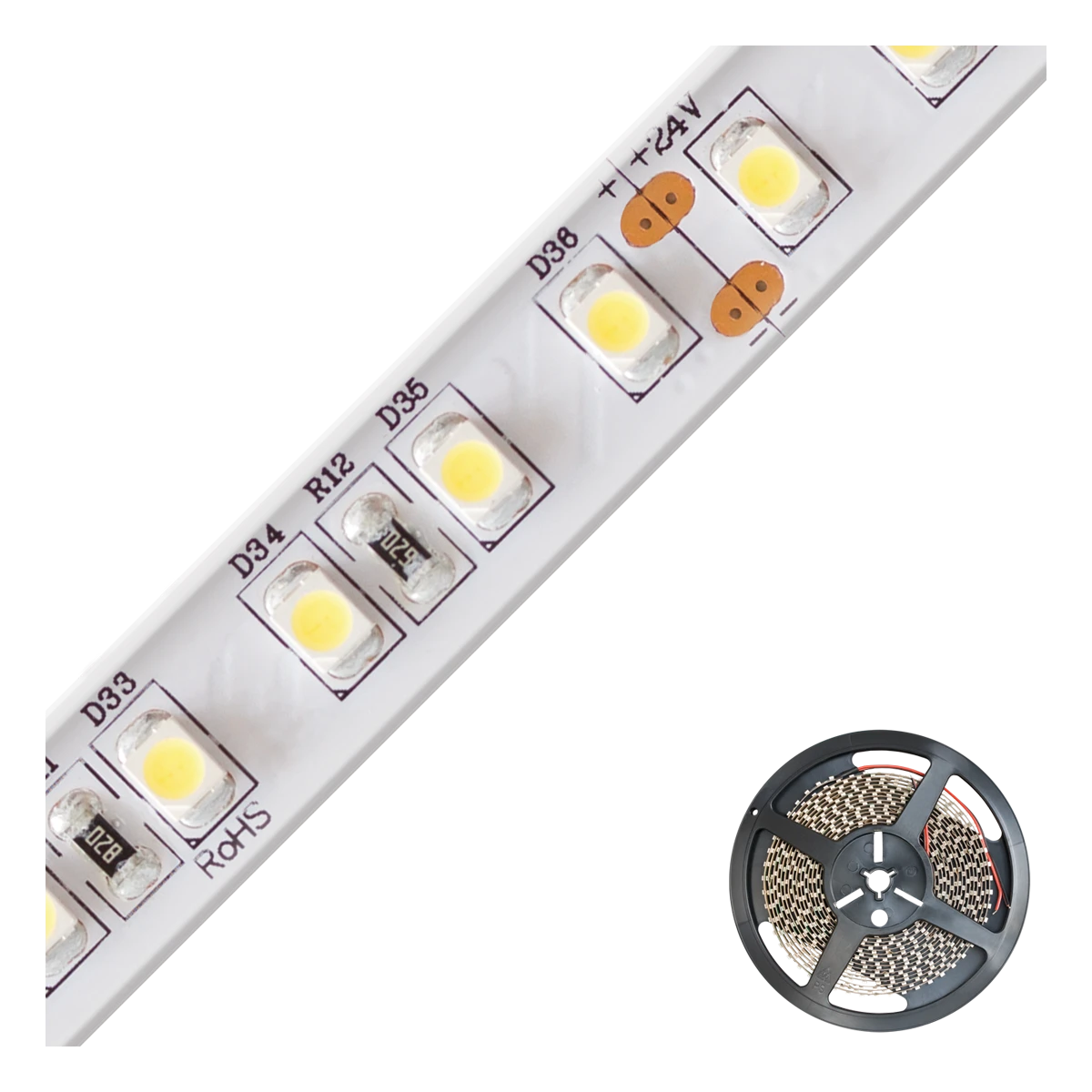 Kürzbarer und flexibler LED-Strip mit hochleistungs LED-Chips. Die auf diesem Strip verbauten superbright LED-Chips erreichen im Vergleich zu herkömmlichen LED-Chips eine deutlich höhere Lichtausbeute bei gleicher Leistungsaufnahme, bzw. vergleichbare Lichtausbeute bei geringerer Leistungsaufnahme. Dadurch lassen sich die verschiedensten Anwendungen, wie z. B. direkte oder indirekte Beleuchtung für Wohnzimmer, Schlafzimmer, Flur, etc. noch Energiesparender umsetzen. Auch Projekte mit gehobenen Ansprüchen bezüglich der Lichtausbeute lassen sich mit diesen Strips realisieren. Wichtig: Um ein überhitzen des Strips zu vermeiden, darf dieser nur auf Wärmeleitenden Untergründen verbaut werden, vorzugsweise in Aluminiumprofilen. Die Lichtausbeute beträgt 910lm pro Meter.